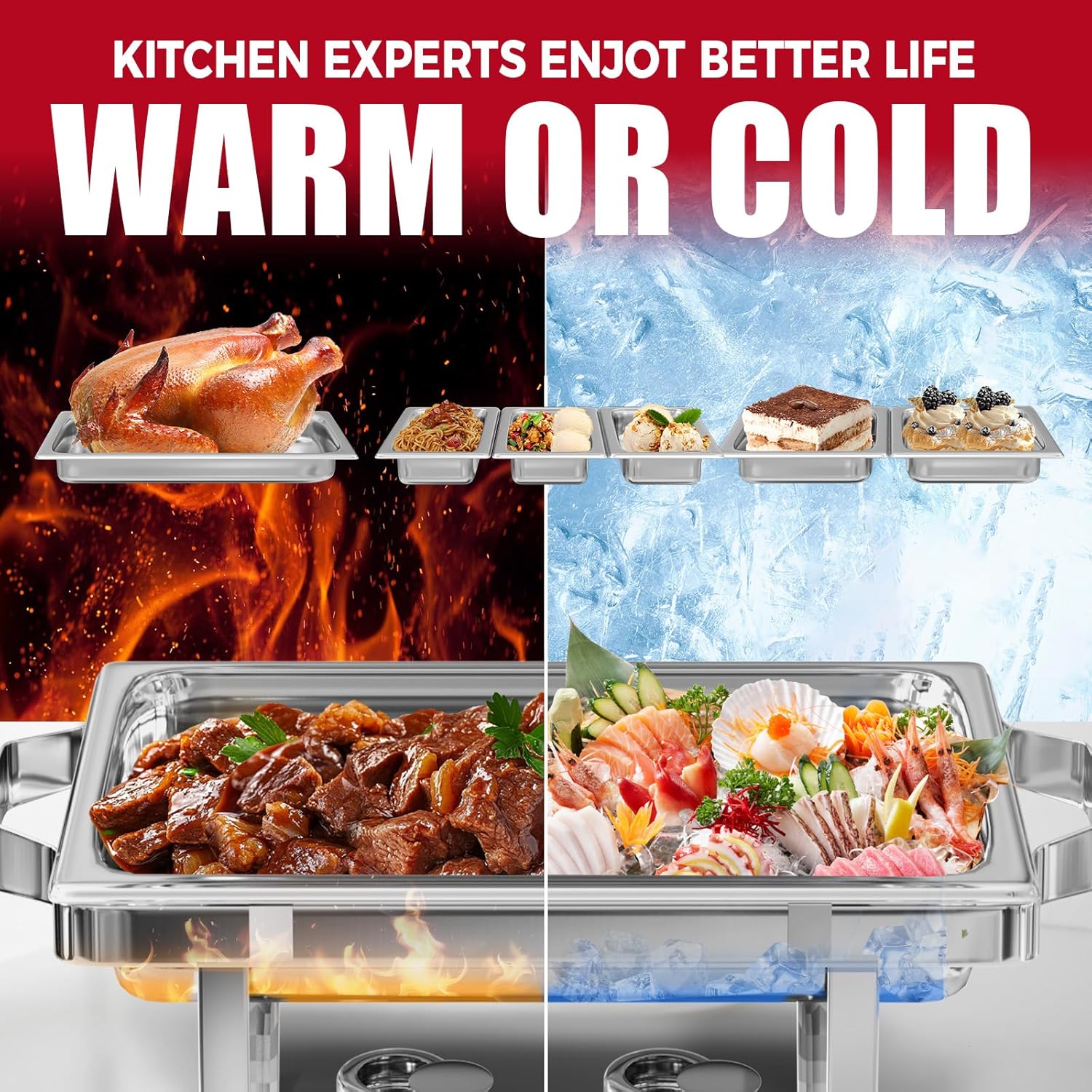 - Wide Usage: IMACONE works to provide practical and convenient products for parties, buffets, gatherings, and events. It is accessible to keep food warm or keep fruit cool. With IMACONE chafing dish, your guests can enjoy warm and scrumptious food anytime without worrying that the food becomes cold to affect its flavor