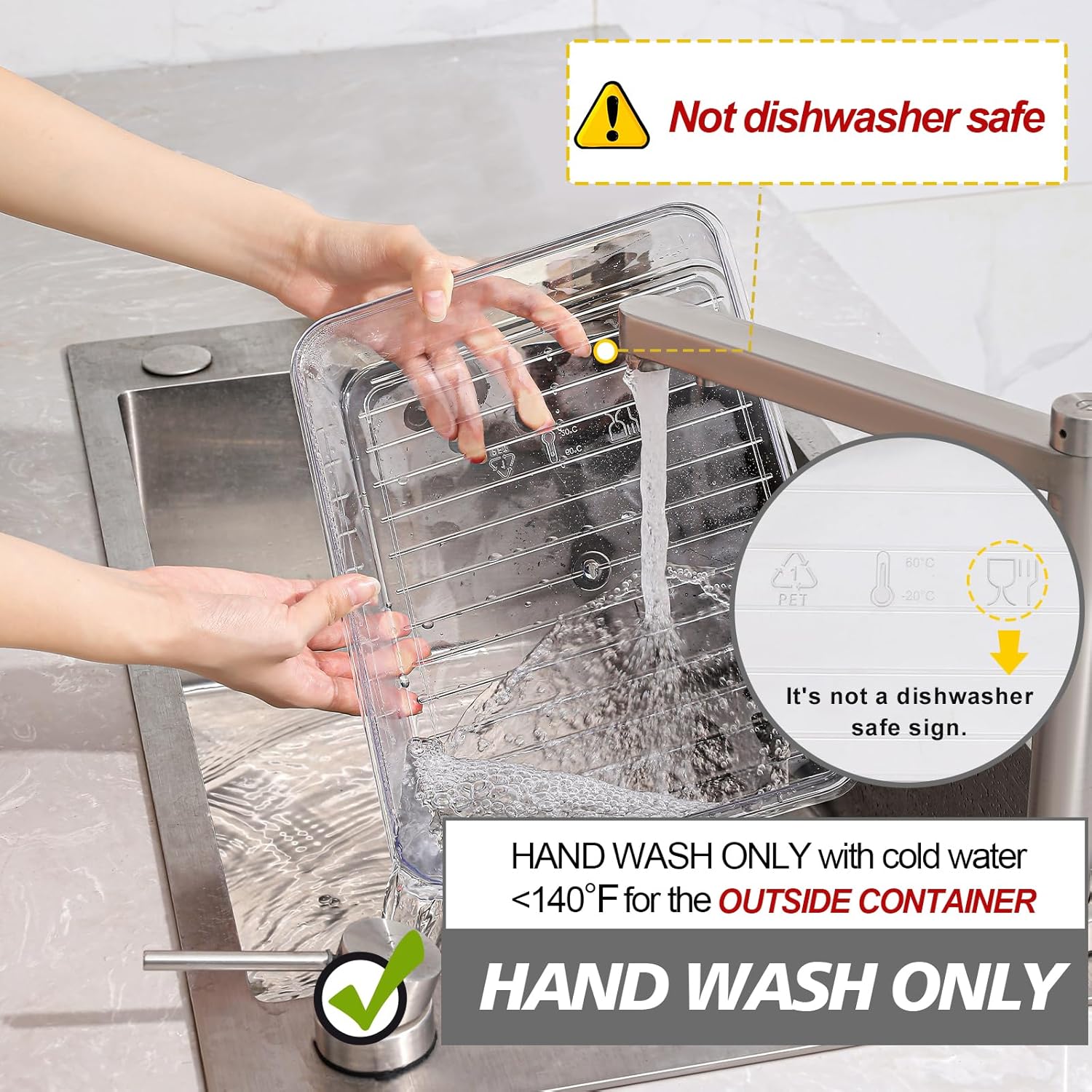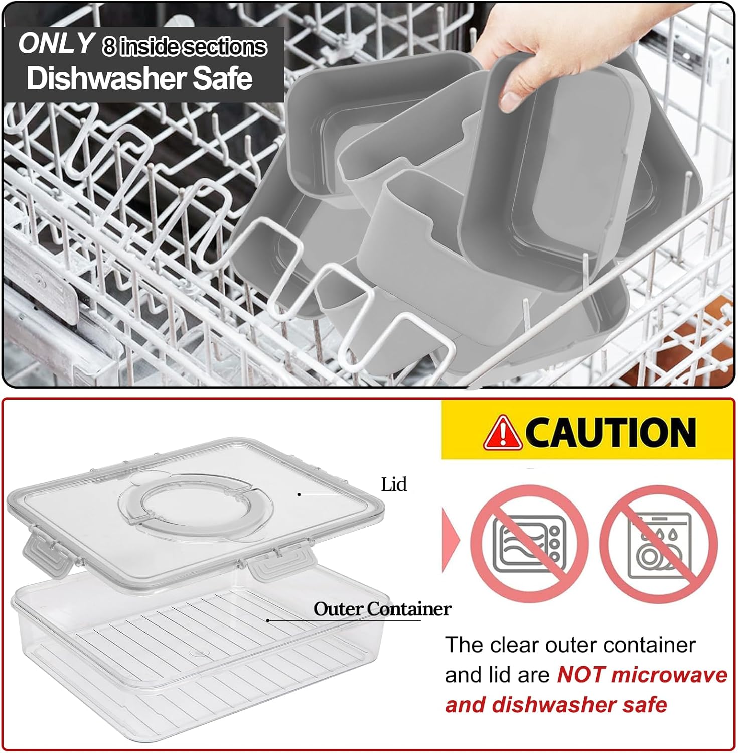 - NOTE: ONLY INNER DIVIDERS ARE DISHWASHER SAFE. The outer container and lid need hand wash with water below 60 ° C( 140℉).