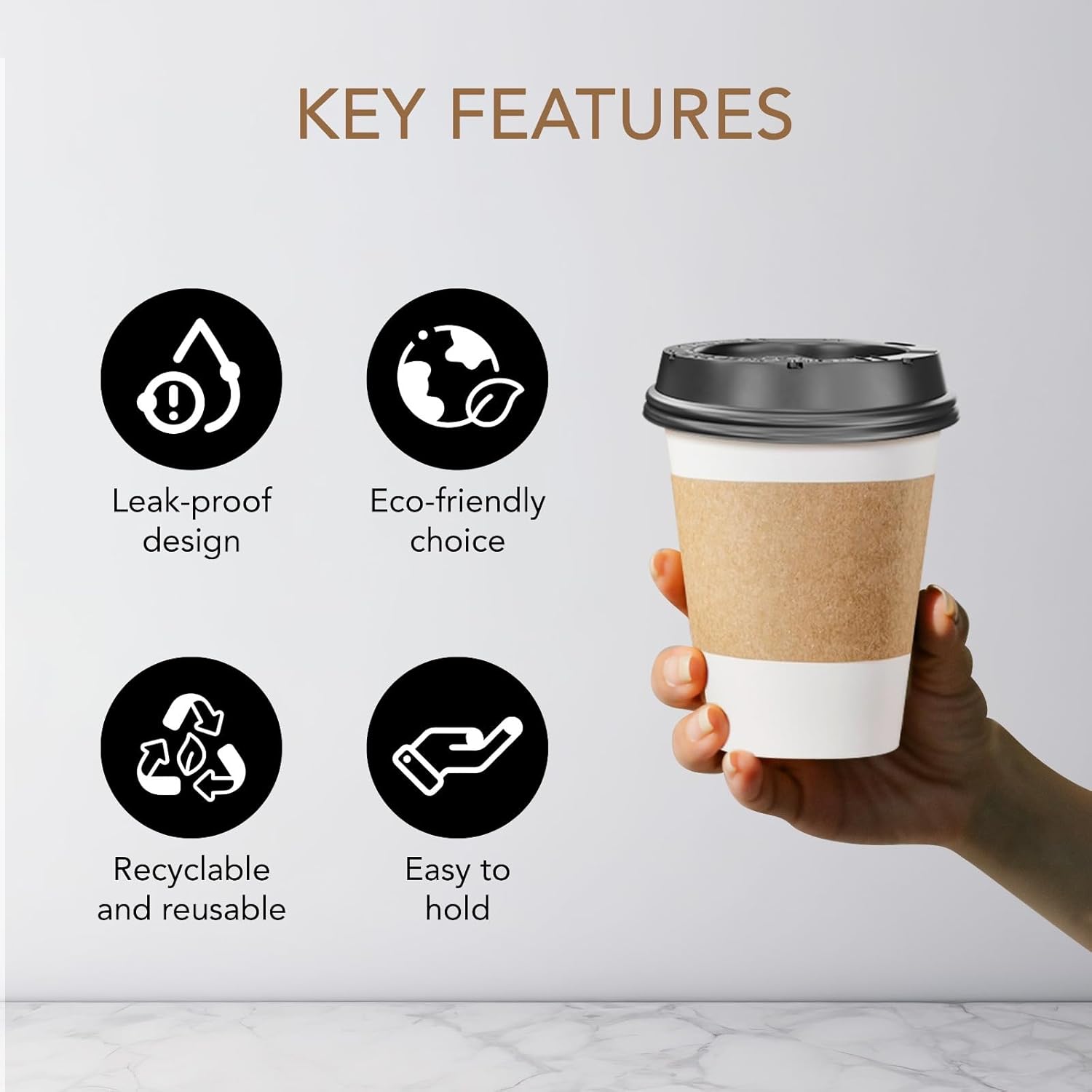 - Great Value Bulk: Get 400 disposable coffee cups with lids and sleeves, perfect for to-go hot coffee cups with lids, including 400 black matching lids and 400 kraft paper-filled cup sleeves
