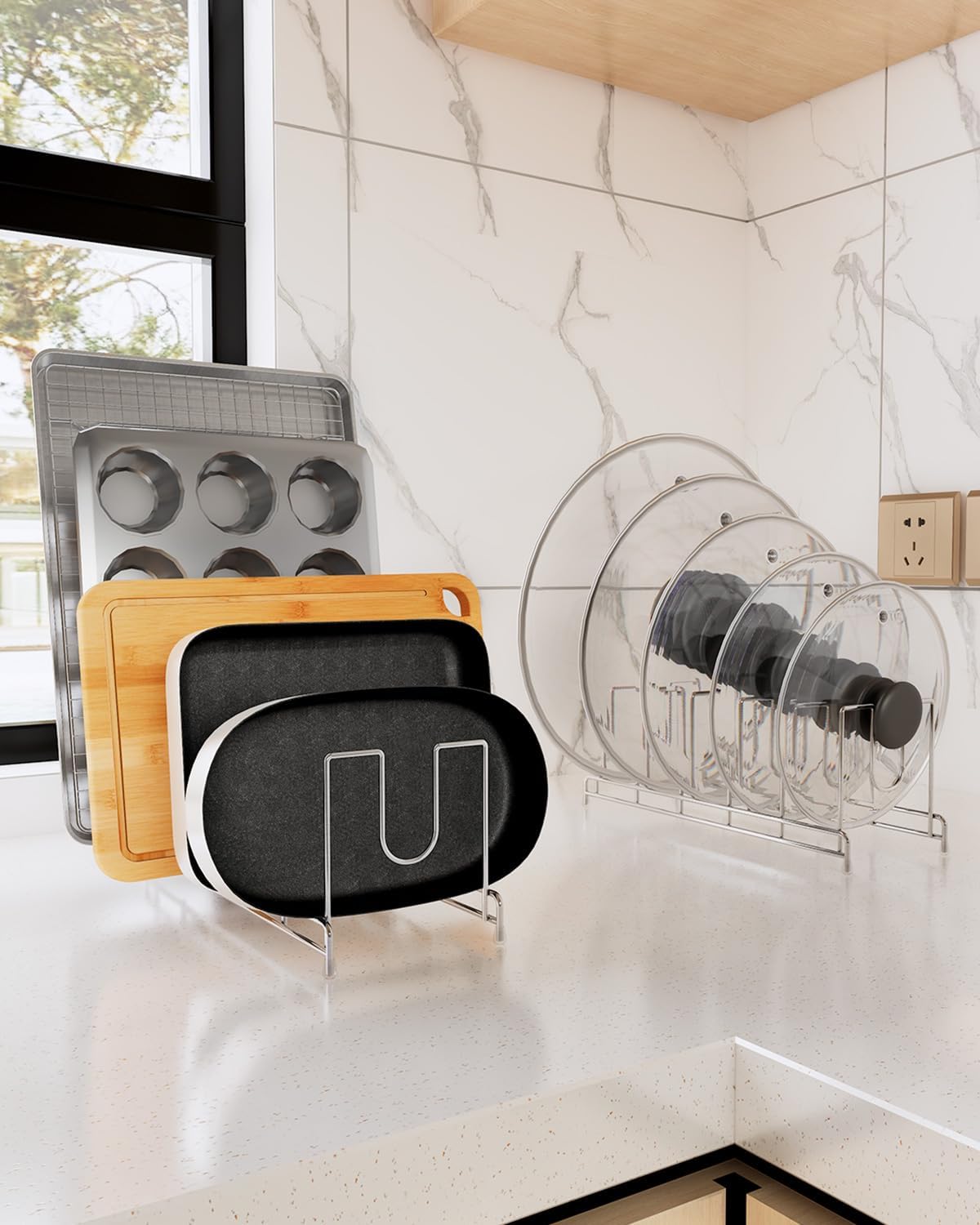 - SPACE-SAVING DESIGN: Each rack features multiple vertical slots to efficiently store lids while maximizing cabinet space and keeping your kitchen organized