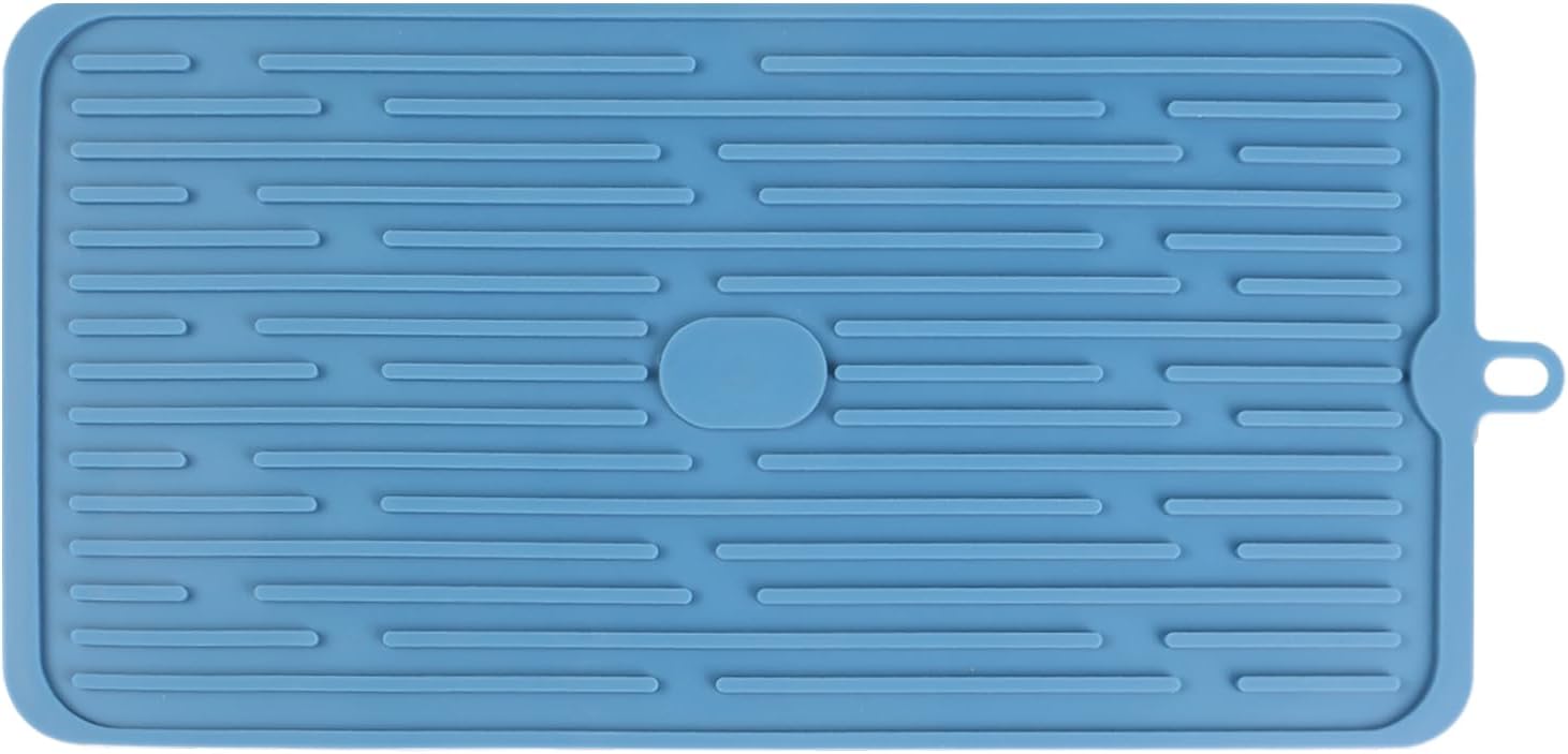 - PREMIUM QUALITY: Silicone dish drying mat size 17.7*7.9inch. Made of food-grade silicone, resists temperatures between -40°C to 230°C/-40°F to 446°F. The water ripple design has good anti-slip performance and is not easy to slide