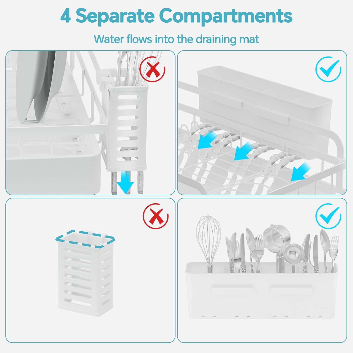 - High Quality & Thoughtful Design: Dish drying rack for kitchen counter is made of high-strength metal to ensure the dish rack with drain is beautiful and high-quality. All corners are rounded and polished to avoid scratches and damage to items
