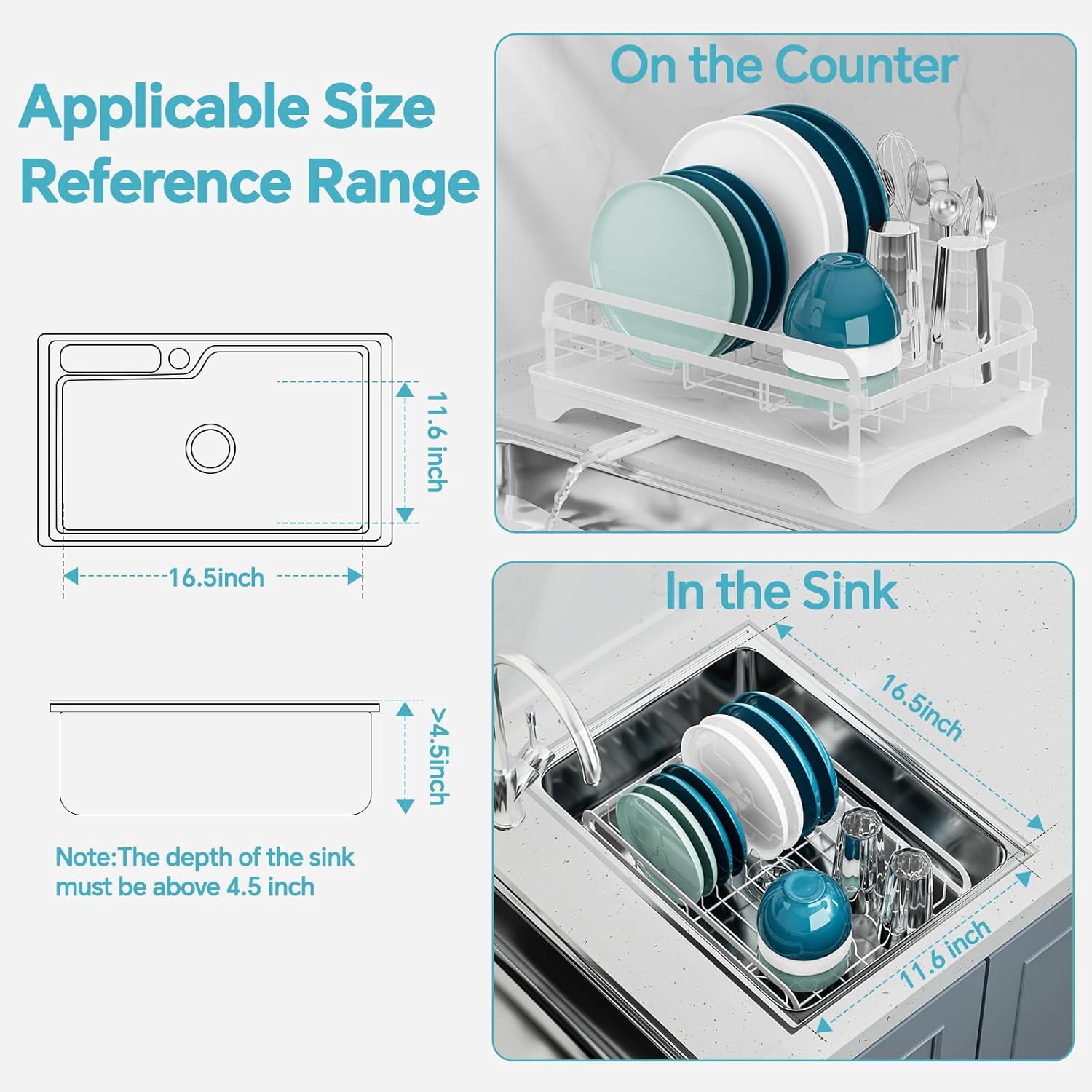 - Space-Saving Design: Measuring 16.5" D x 11.6" W x 6.6" H, this compact dish rack is thoughtfully designed to make the most of limited countertop space. It provides organized storage for your daily dishware—plates, bowls, cups, and utensils