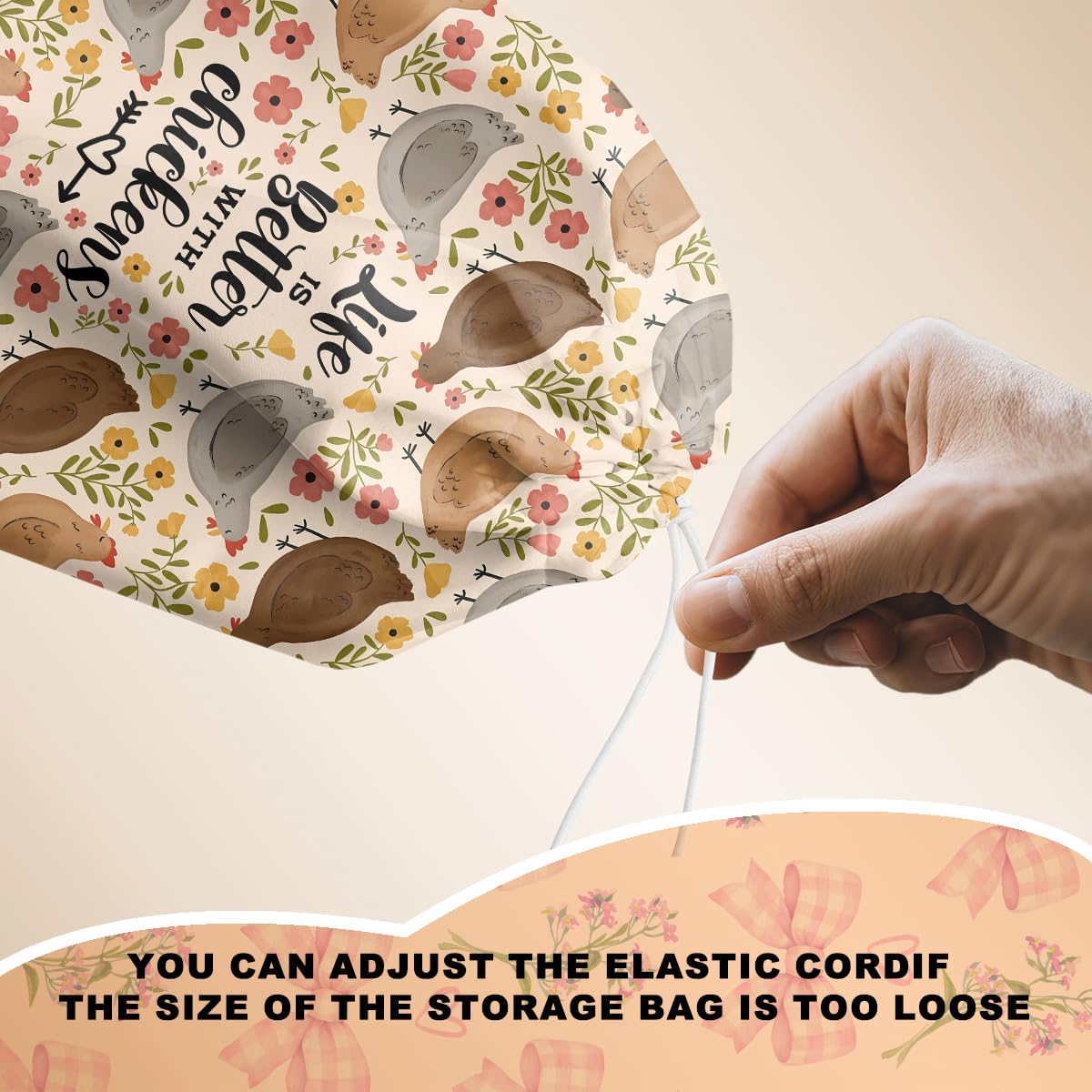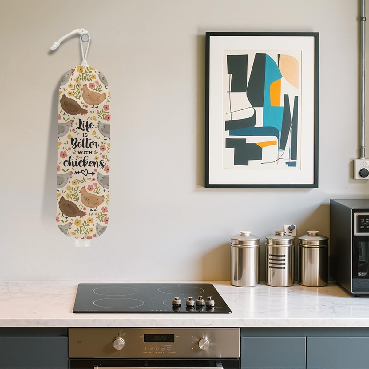 Rustic Chicken Plastic Bag Holder, Vintage Chickens Grocery Bag Holder for Plastic Bags, Pull Rope Free Adjustment, Floral Grocery Bags Storage Dispenser for Home Kitchen, Chicken Gifts for Women