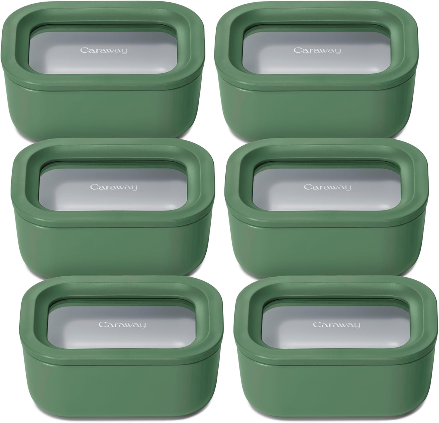 Caraway 6pc Glass Food Storage Set - 2.6 Cup Storage Containers For Food (6) - Non-Toxic Ceramic-Coated Glass - Air Release Technology - Compact & Stackable Design - Sage