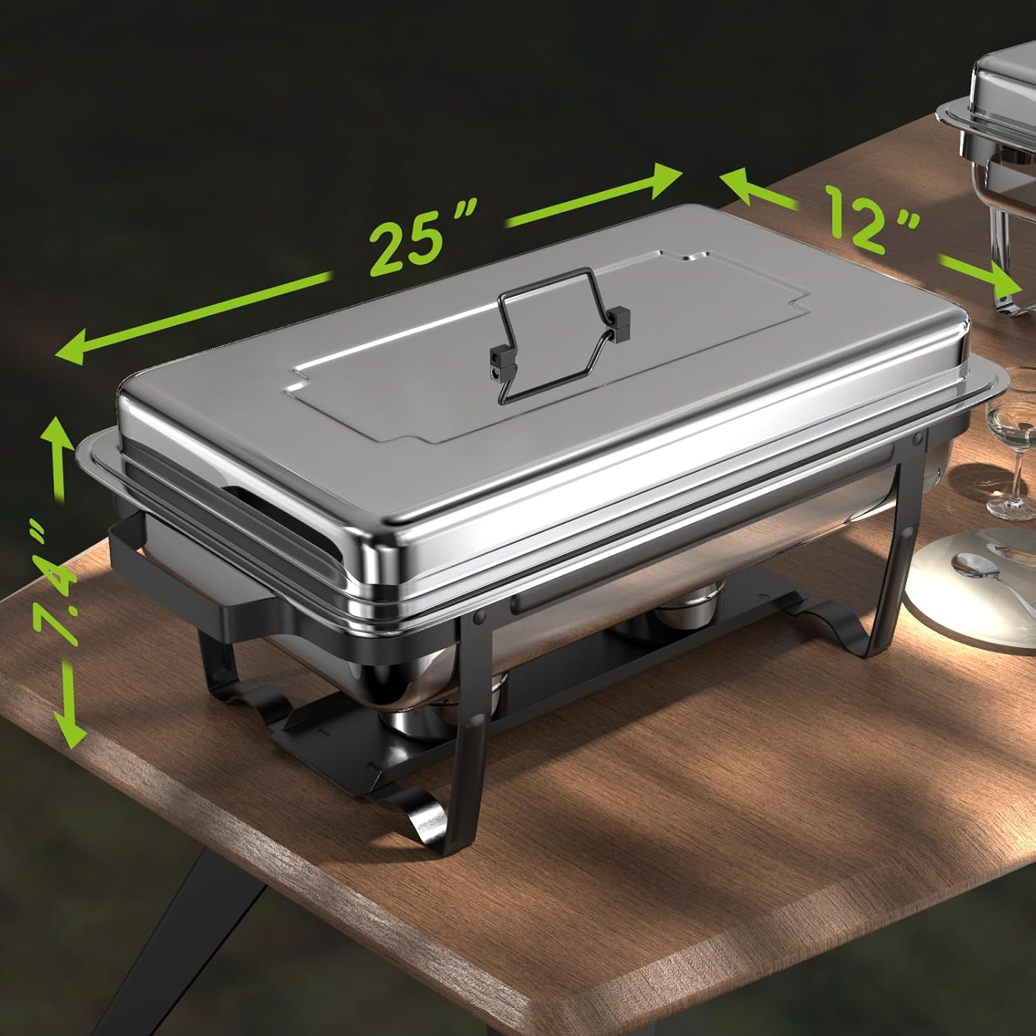 - HIGH QUALITY STAINLESS STEEL: Constructed from thickened stainless steel, our chafing dish demonstrates remarkable durability and is washable for repeated use. This not only offers long-term value but also presents an environmentally friendly alternative to disposable chafing dishes, reducing waste and promoting sustainability
