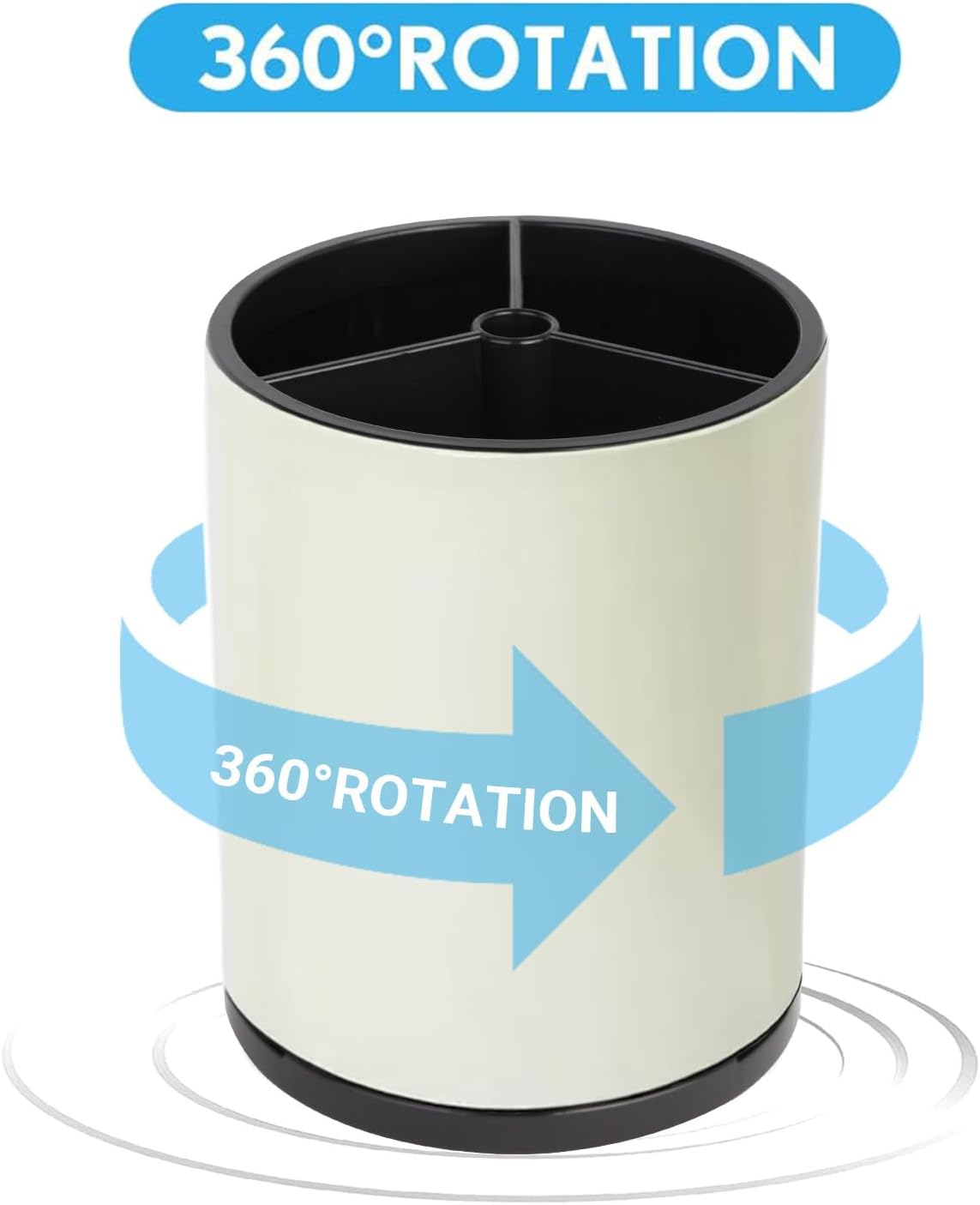 Kitchen Utensil Holder - 360° Rotating Stainless Steel Countertop Organizer for Spoons, Spatulas & Cutlery Storage, Cooking Silverware Caddy with Removable Base, Beige