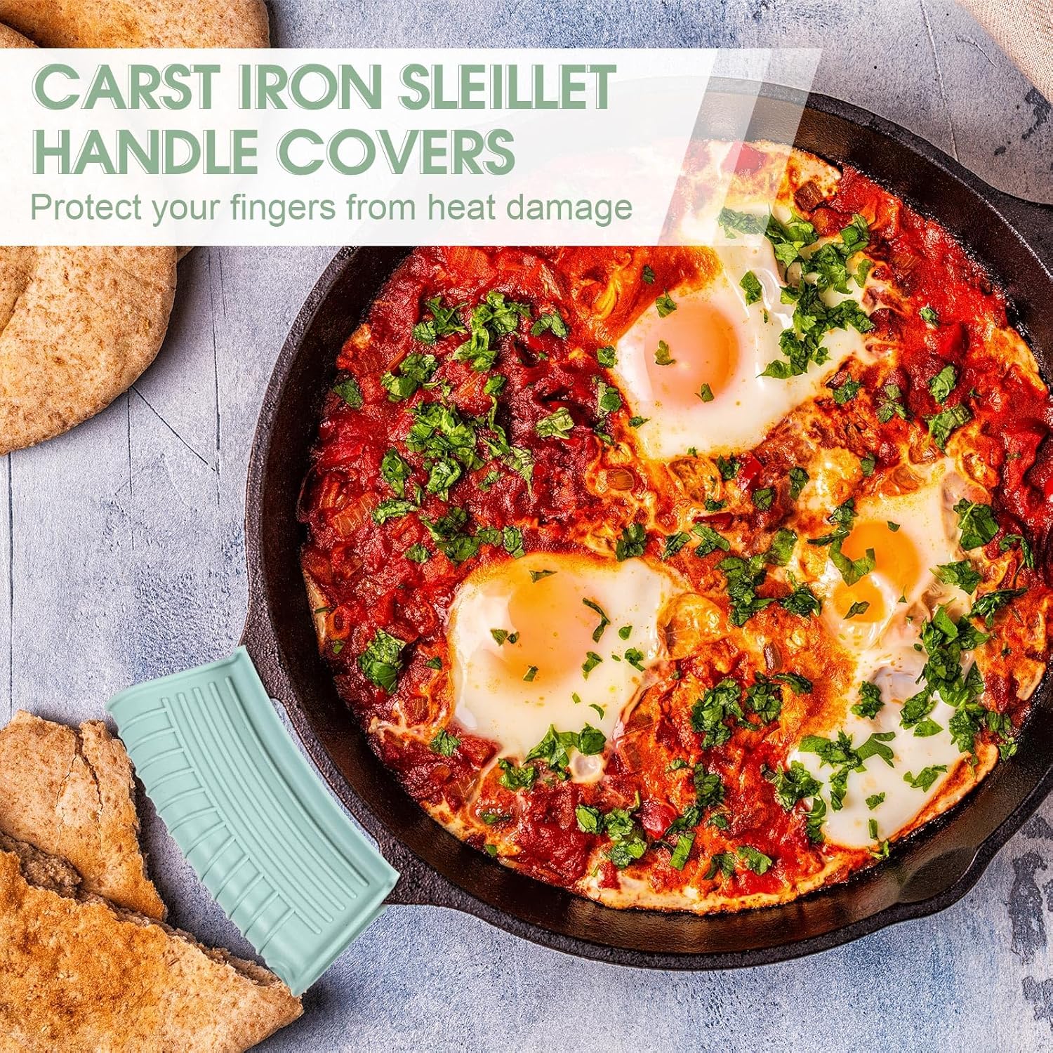 Patelai 4 Pcs Silicone Assist Hot Pan Handle Holder Pot Handle Covers for Cast Iron Skillets Holder Sleeve Nonslip Heat Resistant Pan Cover for Enameled Griddles Casserole Frying Cookware(Mint Green)