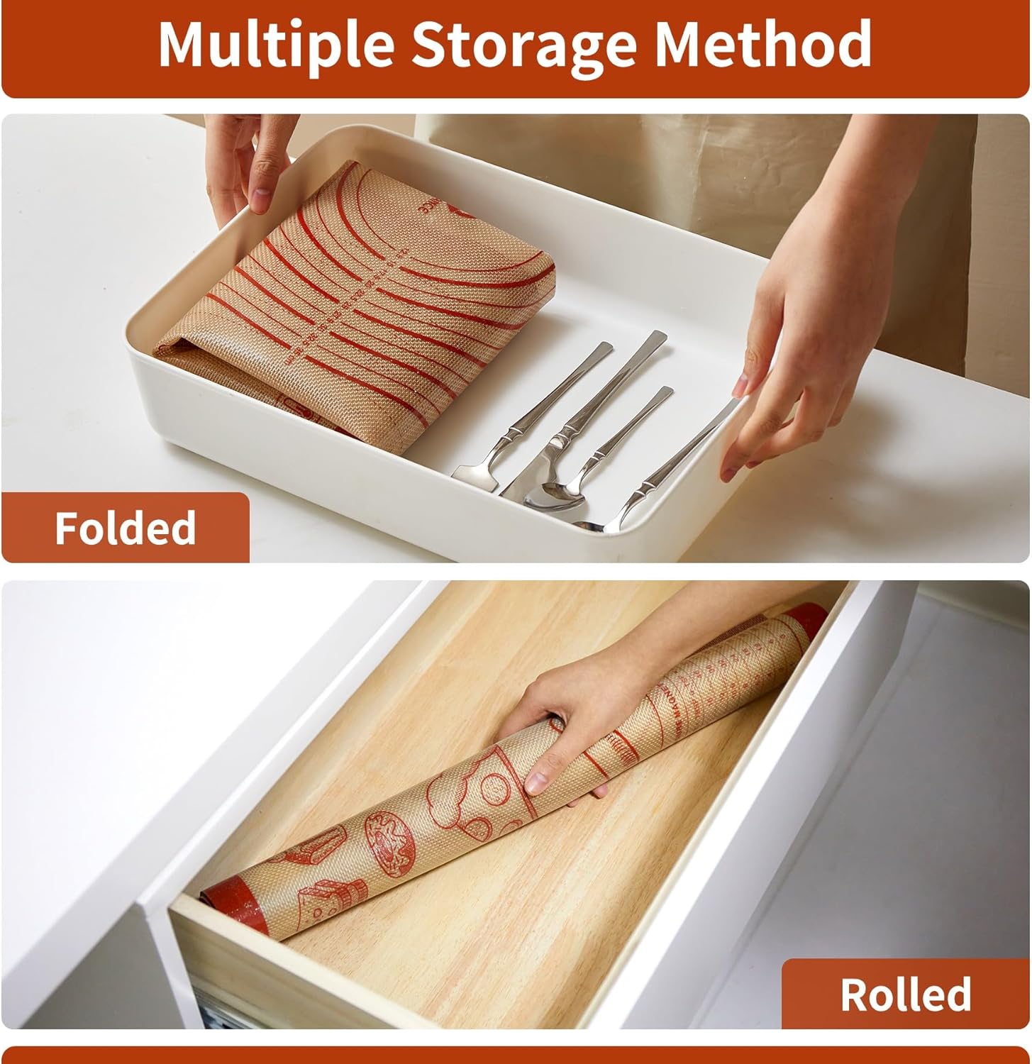 - Non-Stick & Anti-Slip Design: The silicone pastry mat features a non-stick surface that prevents dough and ingredients from sticking, eliminating the need for extra flour. Its anti-slip bottom keeps the mat securely in place, offering stability and control while rolling dough or shaping pastries