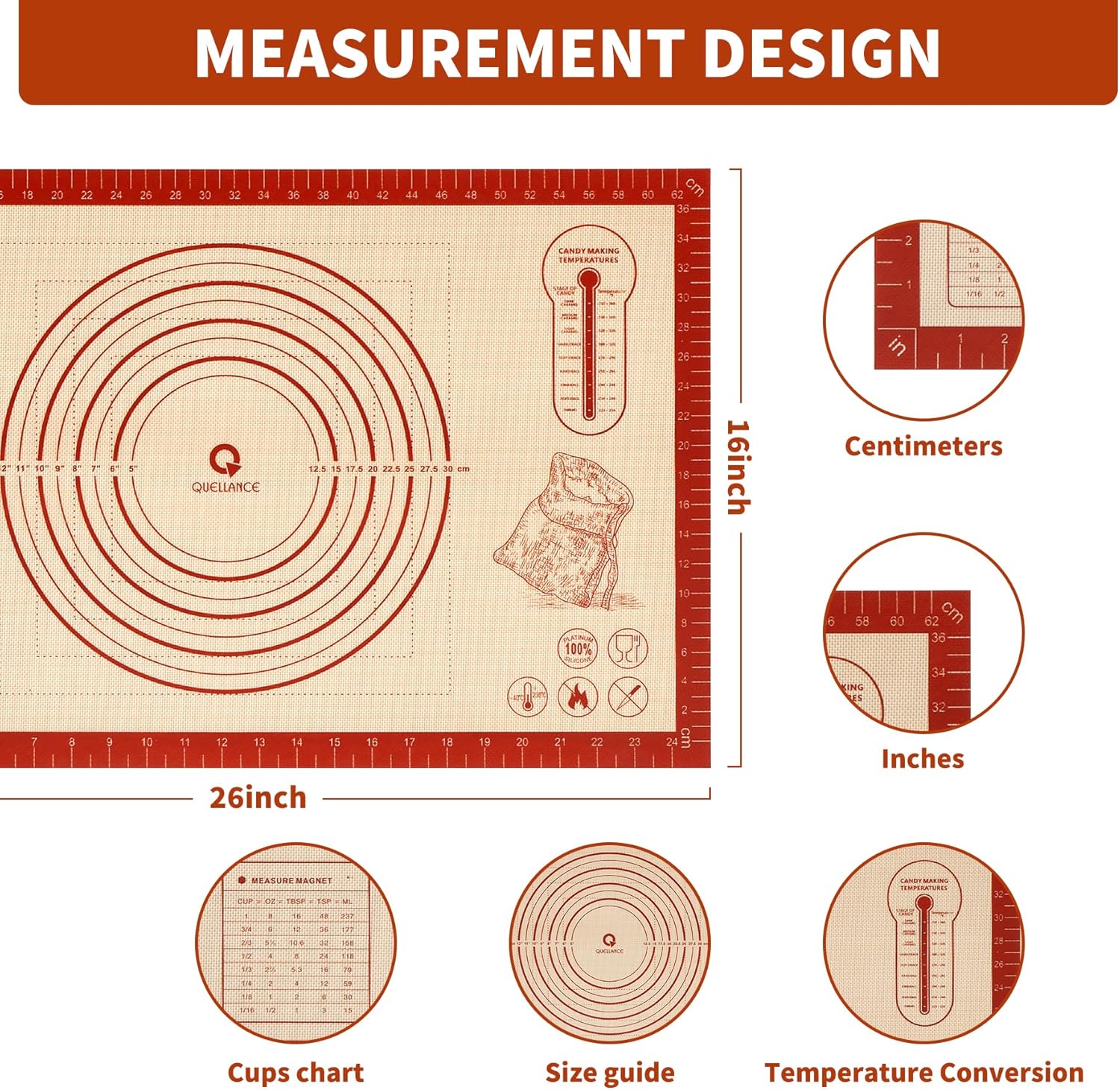- Multi-Purpose Kitchen Baking Mat: The flexible, nonstick, and reusable silicone mat can be used as a pastry rolling mat, oven baking mat, countertop mat, table mat, and craft mat. This thick baking mats is featured both inches and centimeters measurements are available on each side of the mat for the most precise measurements, which is a every practical design