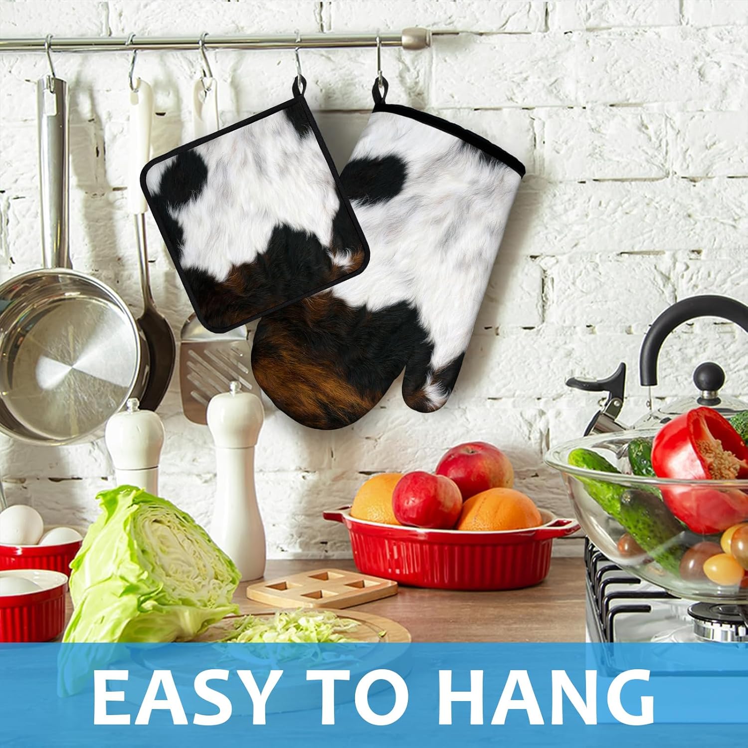 - 【NON-SLIP DESIGN】Kitchen insulating mats and oven mitts have a special non-slip texture on the surface and a soft, comfortable lining that provides a secure, non-slip grip when handling pots and pans, effectively preventing items from slipping off. The oven mitt is designed with a hanging loop for easy hanging.