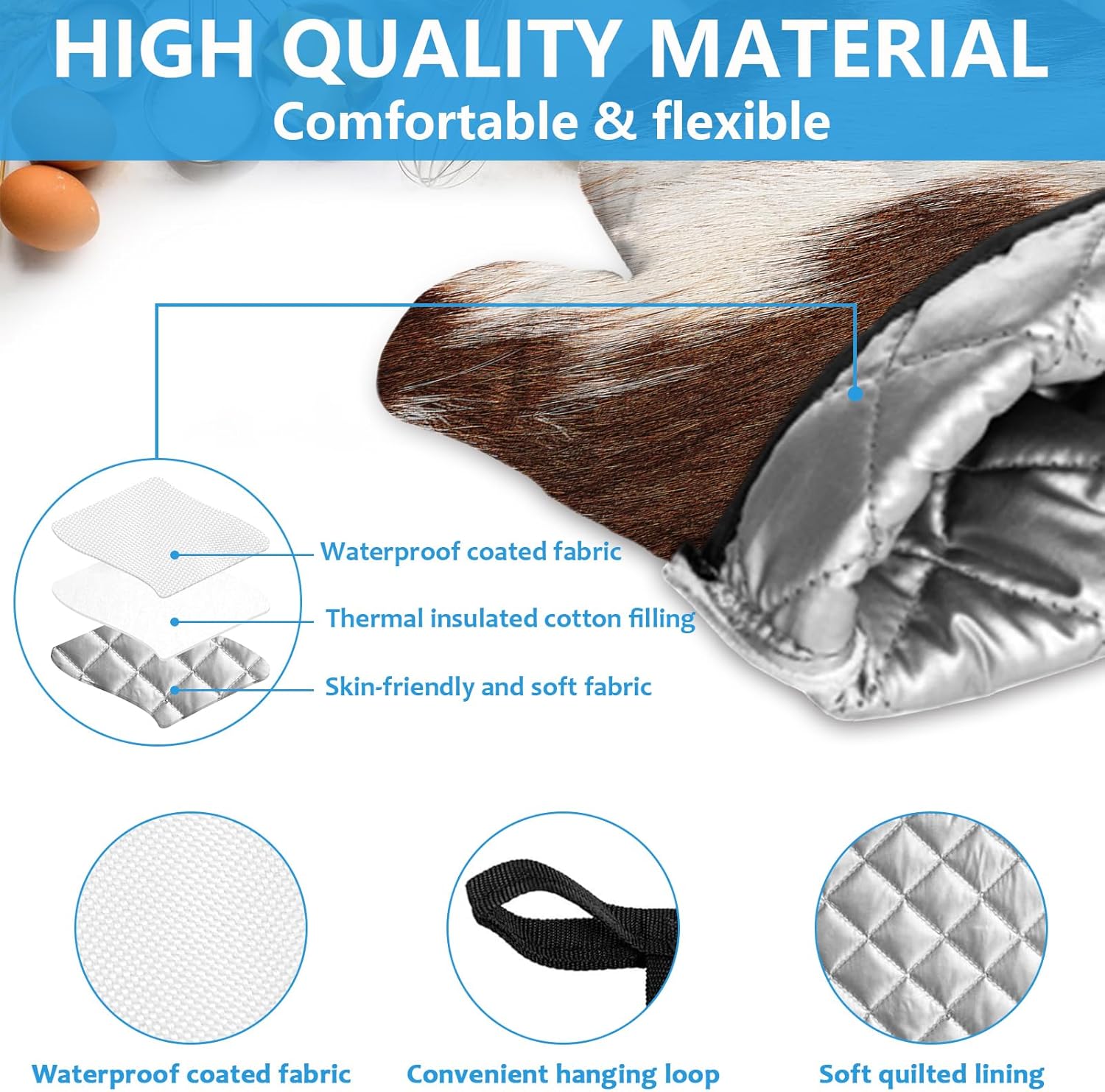 - 【NON-SLIP DESIGN】Kitchen insulating mats and oven mitts have a special non-slip texture on the surface and a soft, comfortable lining that provides a secure, non-slip grip when handling pots and pans, effectively preventing items from slipping off. The oven mitt is designed with a hanging loop for easy hanging.