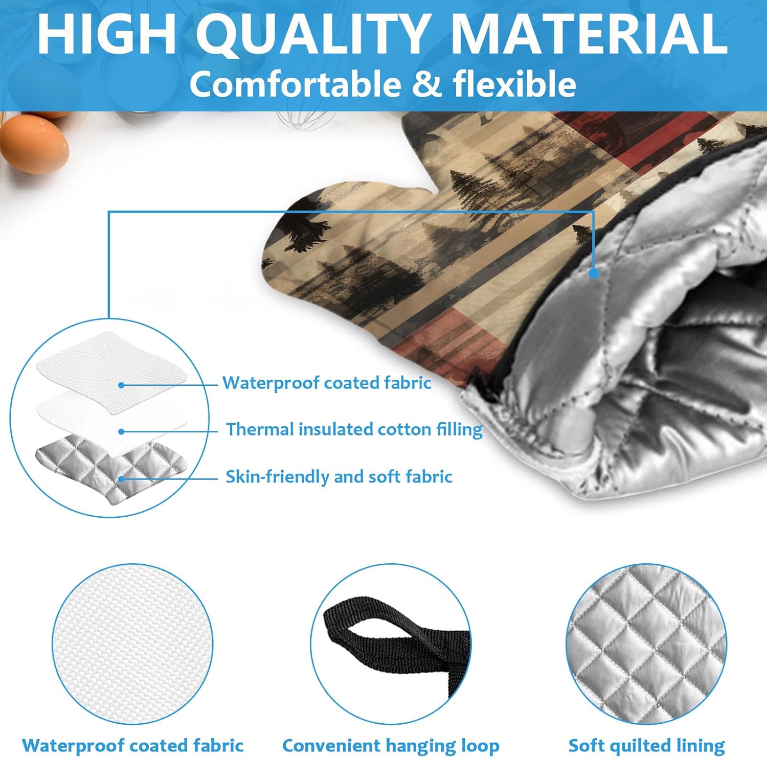 - 【NON-SLIP DESIGN】Kitchen insulating mats and oven mitts have a special non-slip texture on the surface and a soft, comfortable lining that provides a secure, non-slip grip when handling pots and pans, effectively preventing items from slipping off. The oven mitt is designed with a hanging loop for easy hanging.