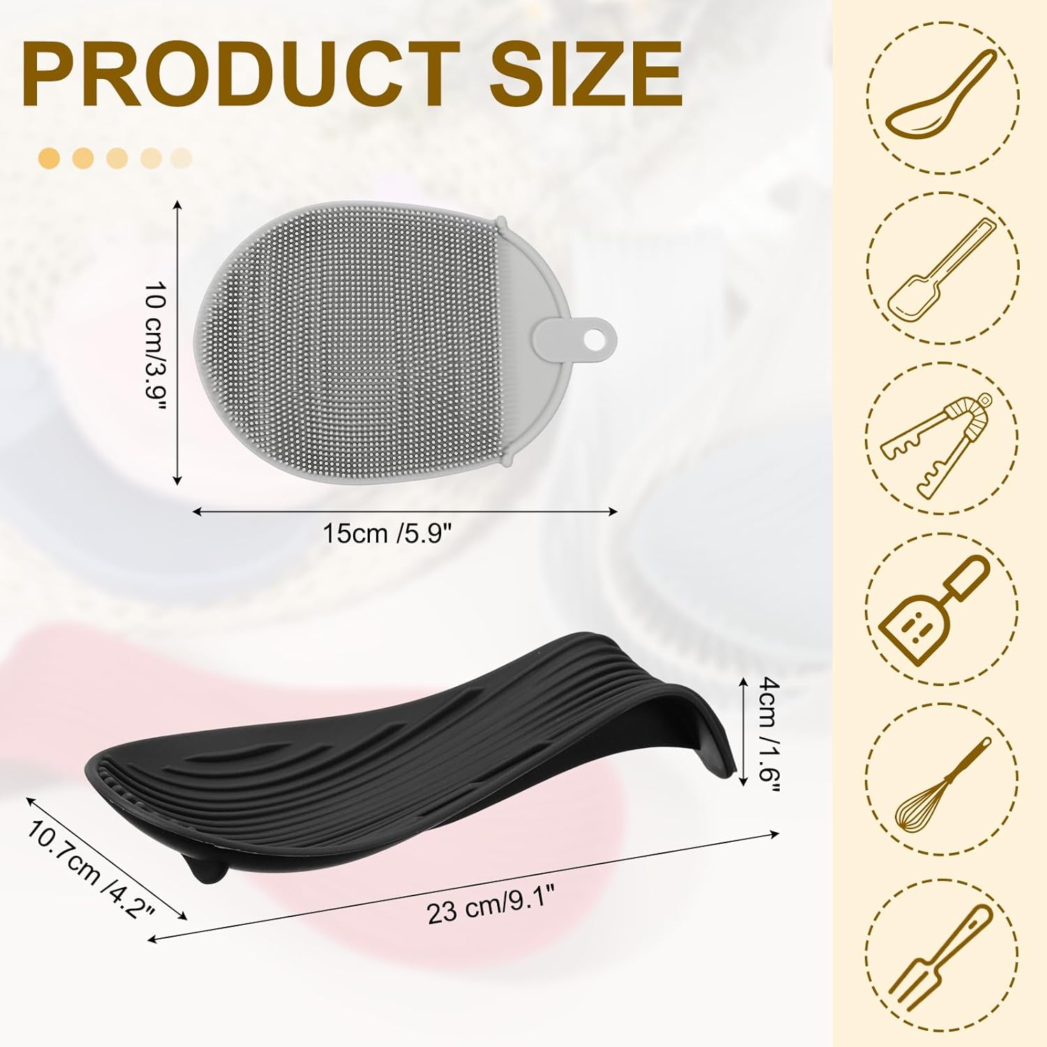 uxcell 1 Set Silicone Spoon Rest for Stove Top, Silicone Spoon Holder for Cooking Spatula, Ladle, Brush Black/Grey