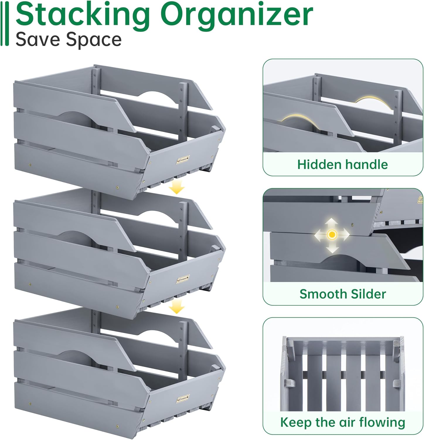 - Sturdy & Durable: Made from solid wood, these onion and potato storage bins are built to last with a polished finish that resists cracking and warping