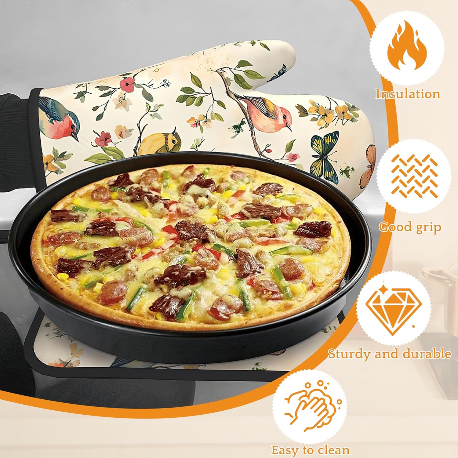 - Heat Resistant: Made from polyester and insulating cotton, these oven mitts and pot holders provide excellent heat resistance to effectively protect your hands from hot pots, pans, and baking trays. Cook with confidence and safety.