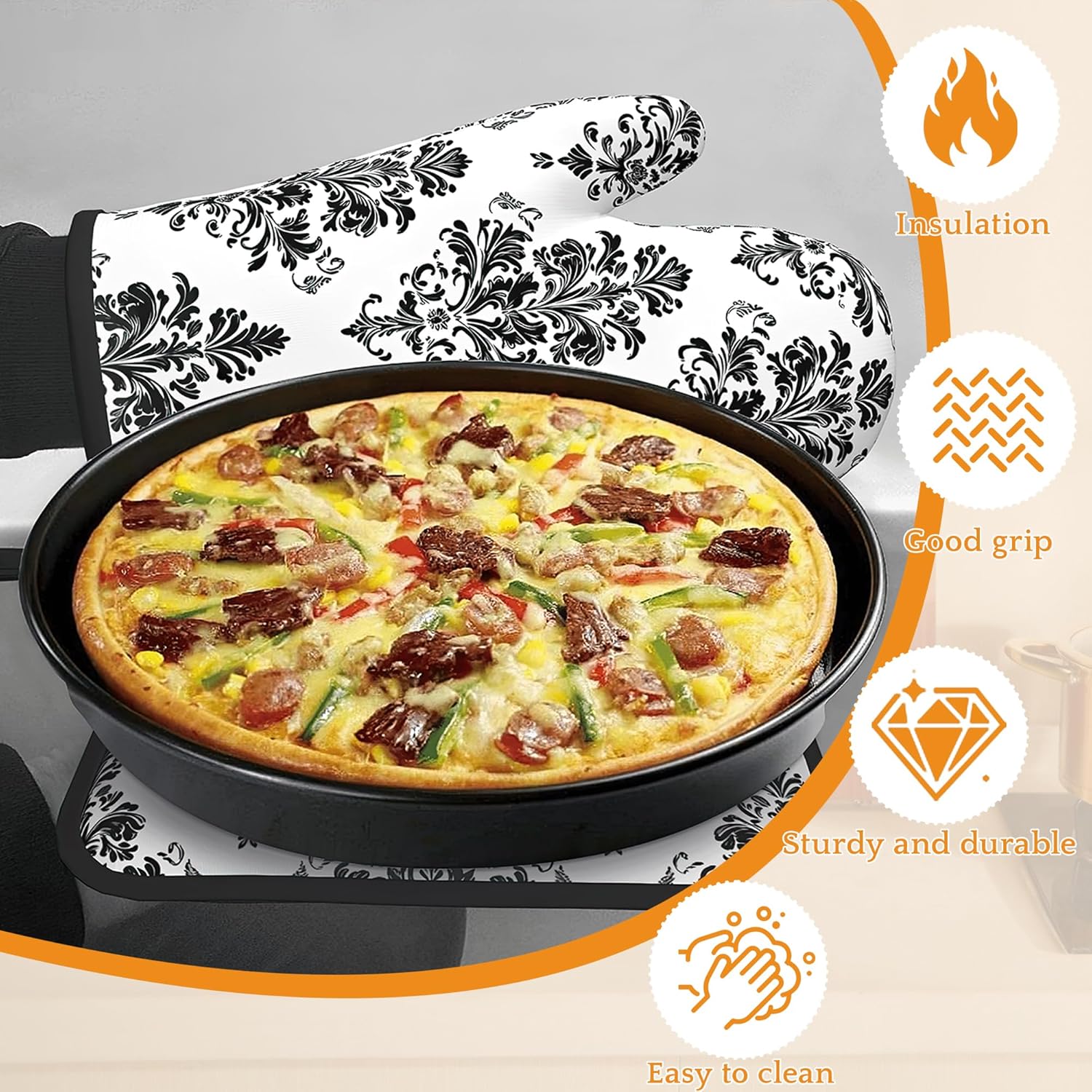 - Heat Resistant: Made from polyester and insulating cotton, these oven mitts and pot holders provide excellent heat resistance to effectively protect your hands from hot pots, pans, and baking trays. Cook with confidence and safety.