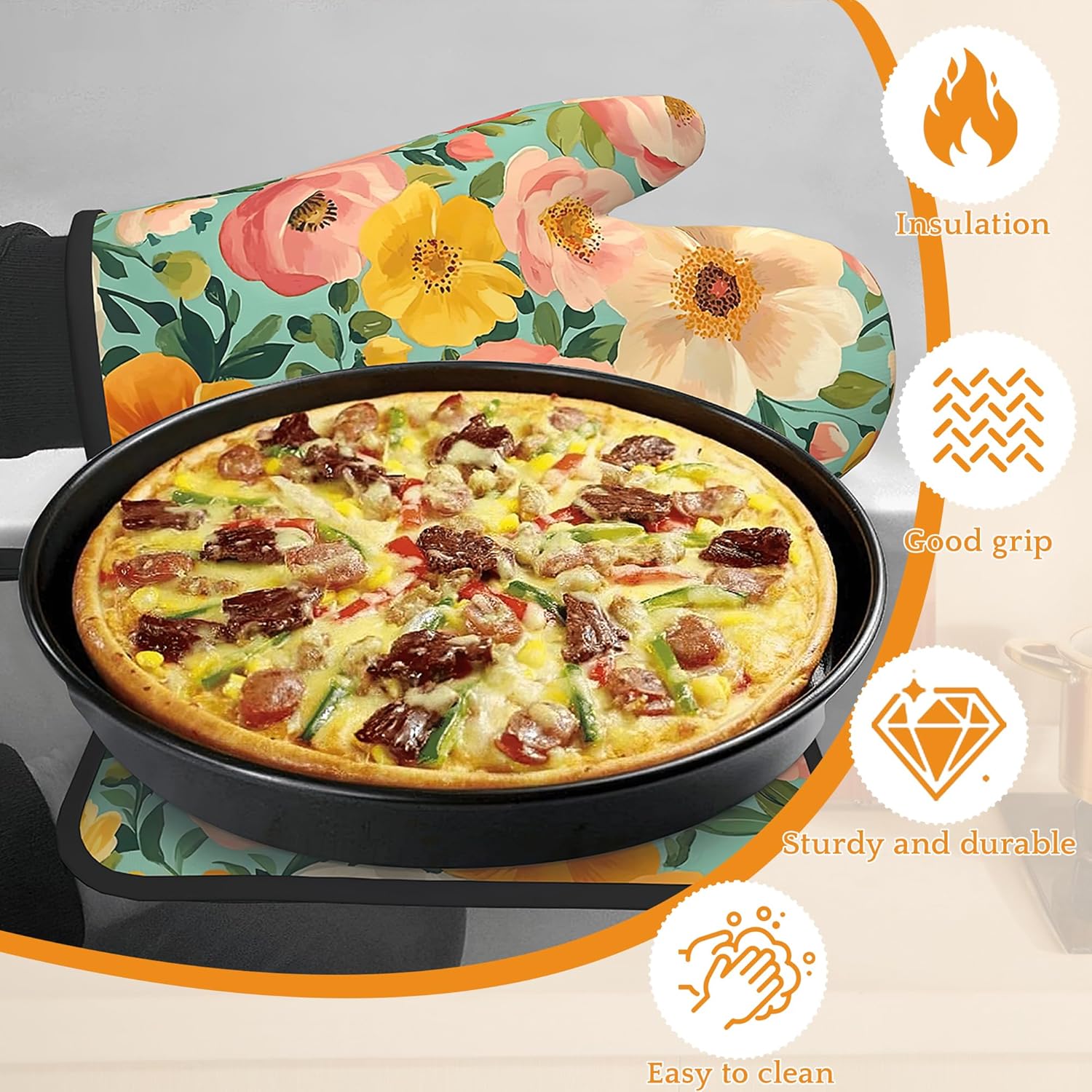 - Heat Resistant: Made from polyester and insulating cotton, these oven mitts and pot holders provide excellent heat resistance to effectively protect your hands from hot pots, pans, and baking trays. Cook with confidence and safety.