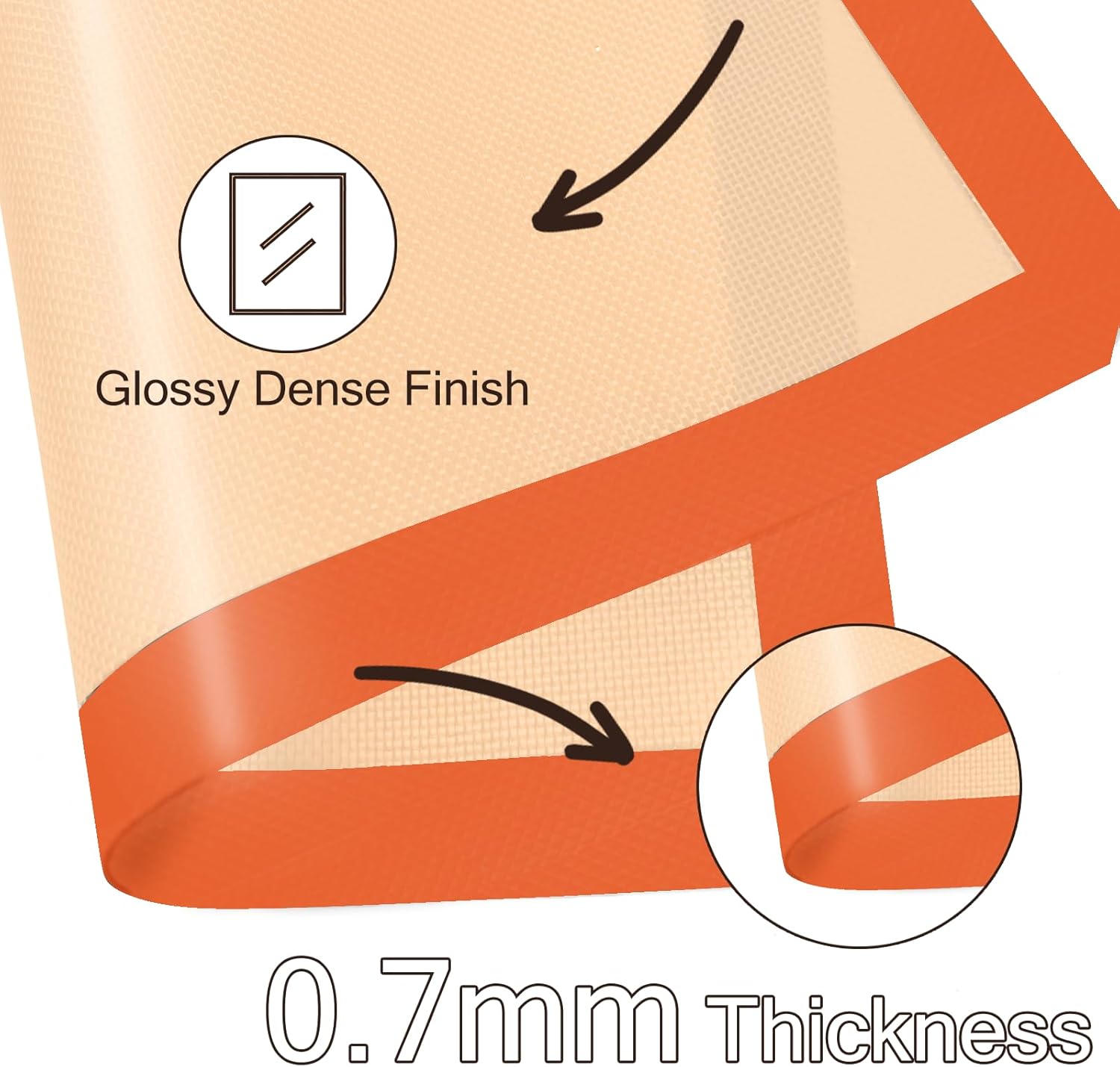 - [ NONSTICK SURFACE ] There is no need to grease the silicone baking sheet when using it, and even the dough is less likely to stick to the silicone baking sheets for oven. Each baking mat is 0.03 inches thick, double thickness for durability.