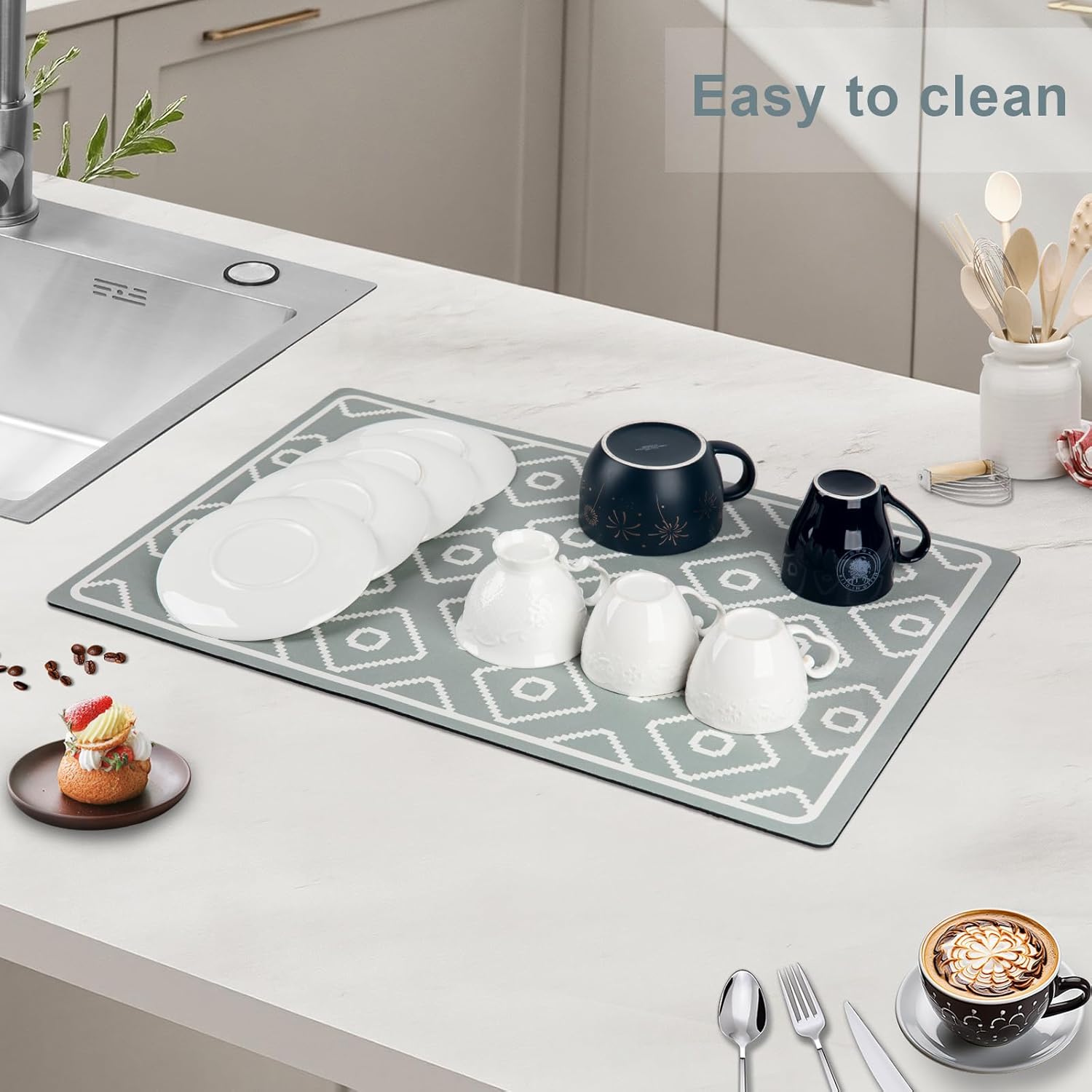 - Ultra-absorbent - Our dish drying mat is crafted from high-quality diatomite with sponge, offering exceptional absorbency to instantly soak up liquids without leaving any trace. It's not only a fantastic addition to your coffee bar for managing coffee splashes and spills but also a practical dish-drying mat for efficiently draining excess water beneath a dish rack.