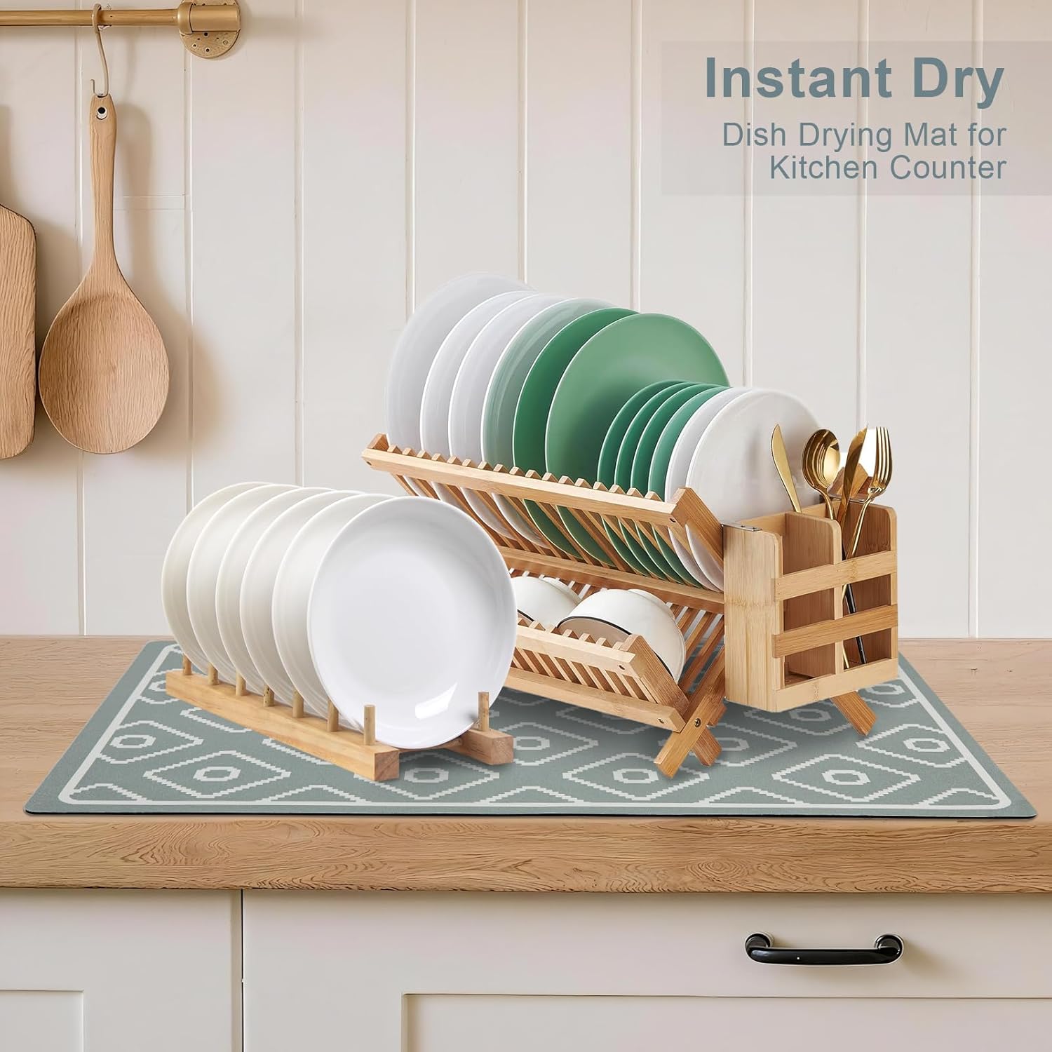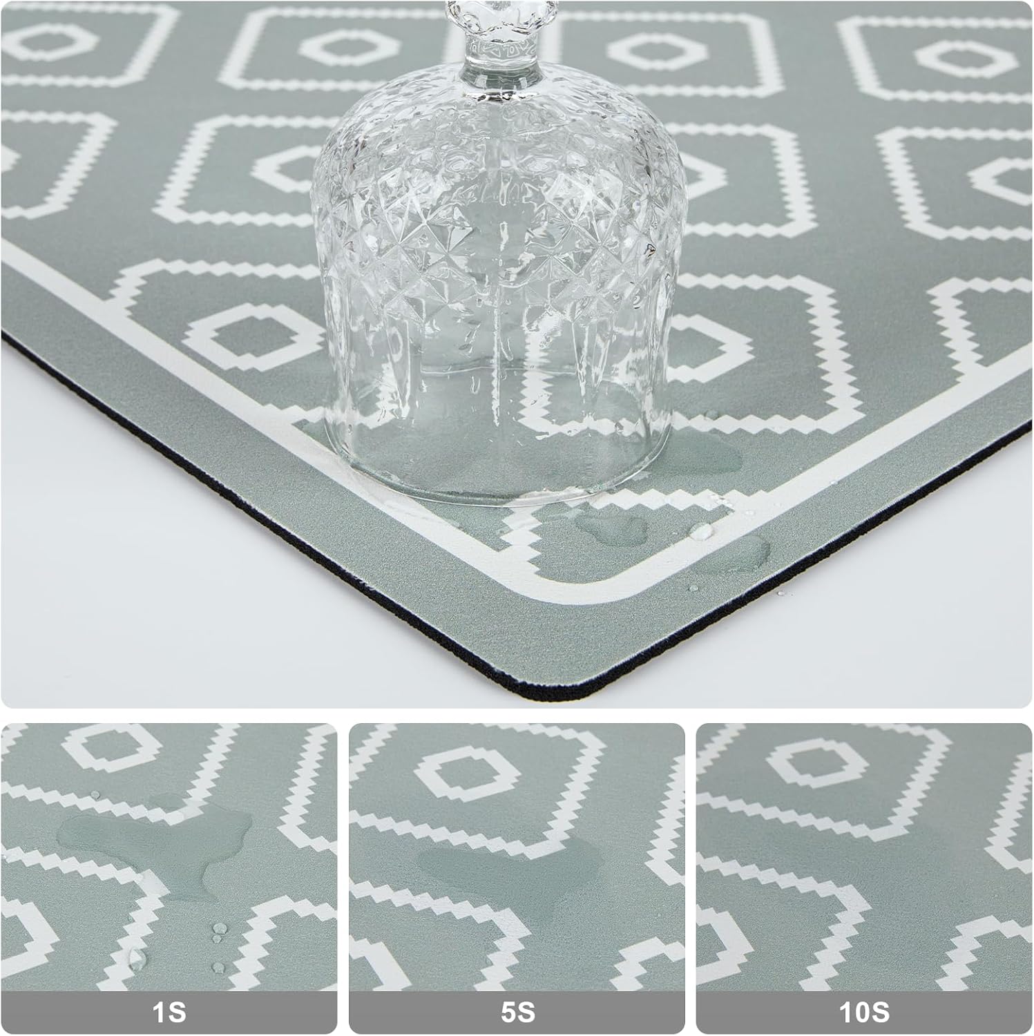 SUEH DESIGN Dish Drying Mat, Absorbent Coffee Mat 19.6 x 11.8 in Quick Dry Kitchen Drying Dish Drain Mat for Kitchen Counter Coffee Bar, Green