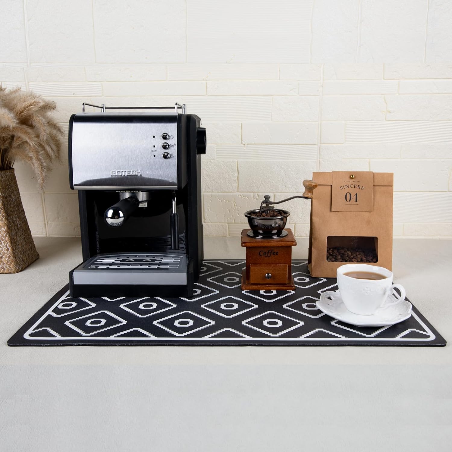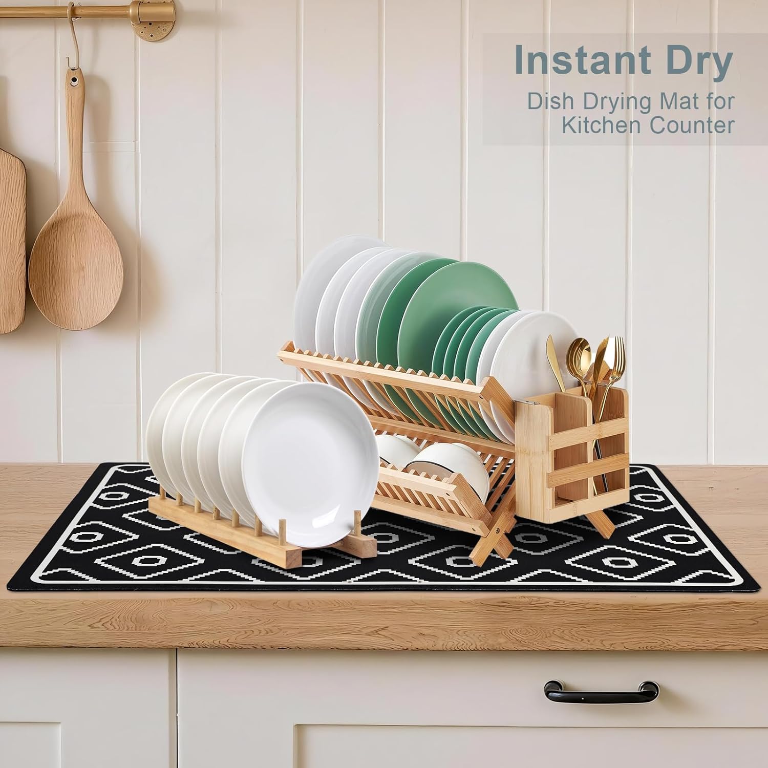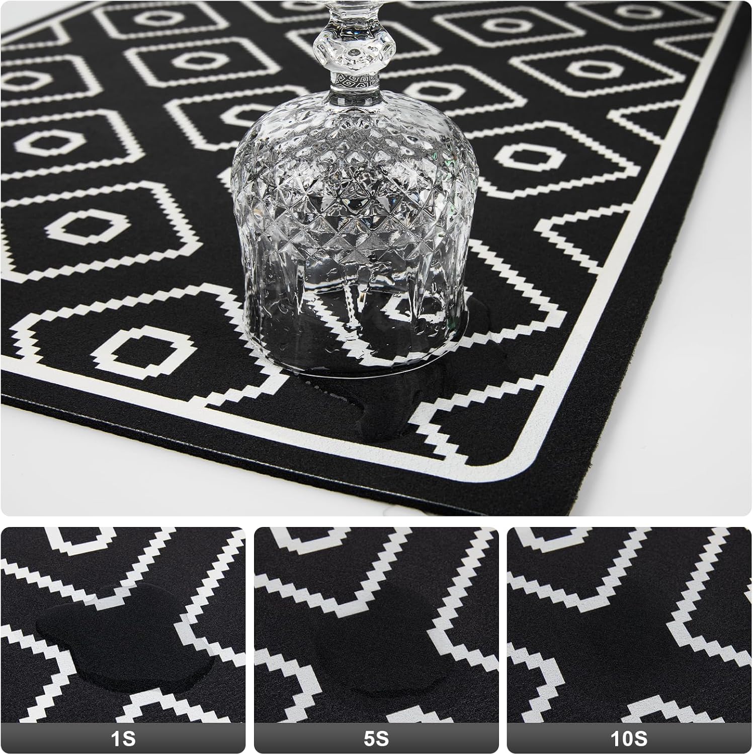 SUEH DESIGN Dish Drying Mat, Absorbent Coffee Mat 23.6 x 15.7 in Quick Dry Kitchen Drying Dish Drain Mat for Kitchen Counter Coffee Bar, Black