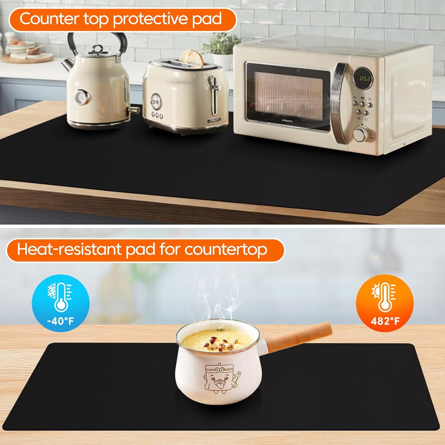 - Easy to Clean And Store: The heat resistant silicone mat for kitchen counter surface is non-stick, allowing water stains and dirt to be wiped away with a simple wipe. It can also be rinsed directly with water. When not in use, it can be rolled up for storage, taking up minimal space.