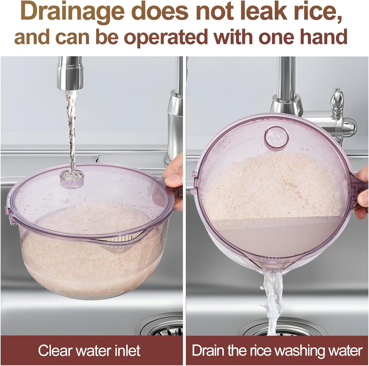 - Rice Washer Strainer Bowl: The rice washing bowl gets rice thoroughly clean, and the rice rinser strainer drains water easily. Ensures grains stay pure, cuts prep time, and simplifies your kitchen routine—great for every rice enthusiast.