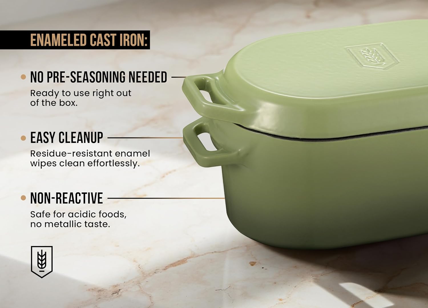 Kook Dutch Oven with Lid, Dual Handles, Enameled Cast Iron, Great for Baking Bread, Cooking and Roasting, Dishwasher Safe, 3.4 Qt, Sage Ombre