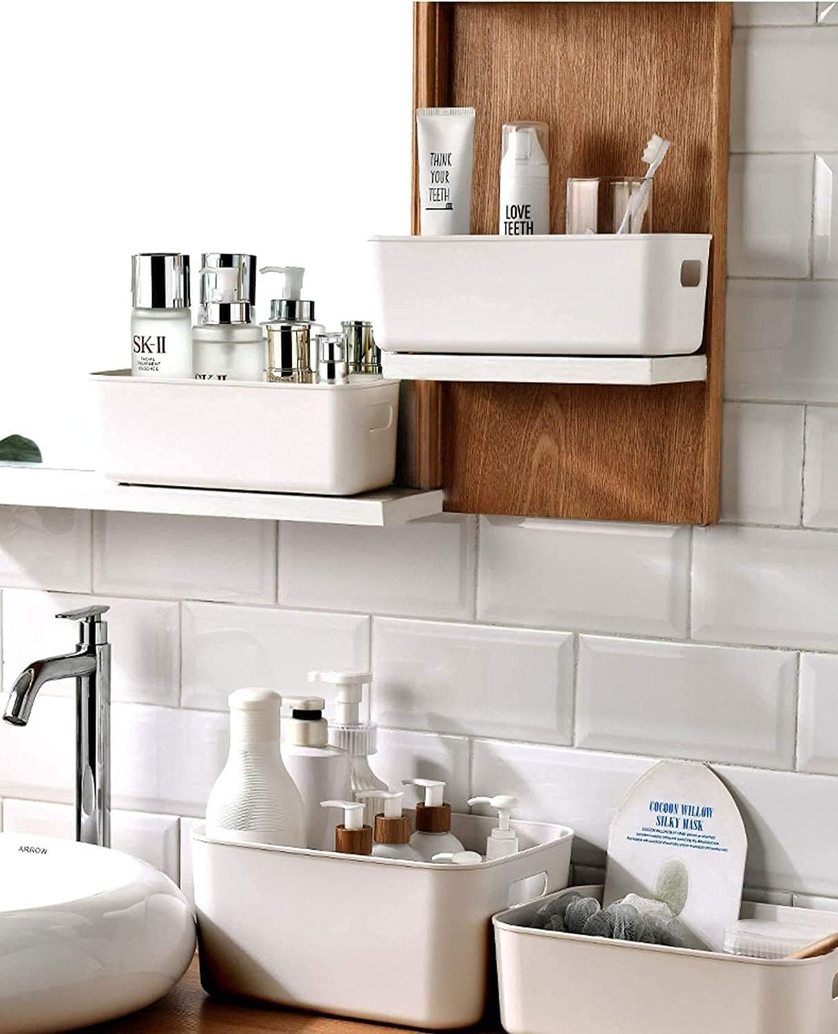 - 5-【Perfect Size】- "11 x 7.9 x 3.7" These storage shelves will organize your bathroom accessories while fitting in with your kitchen organization and storage. Its Flexible Size will make its use as your storage box, under bed storage, mail organizer and storage drawers. Comes in a value pack of 6 !