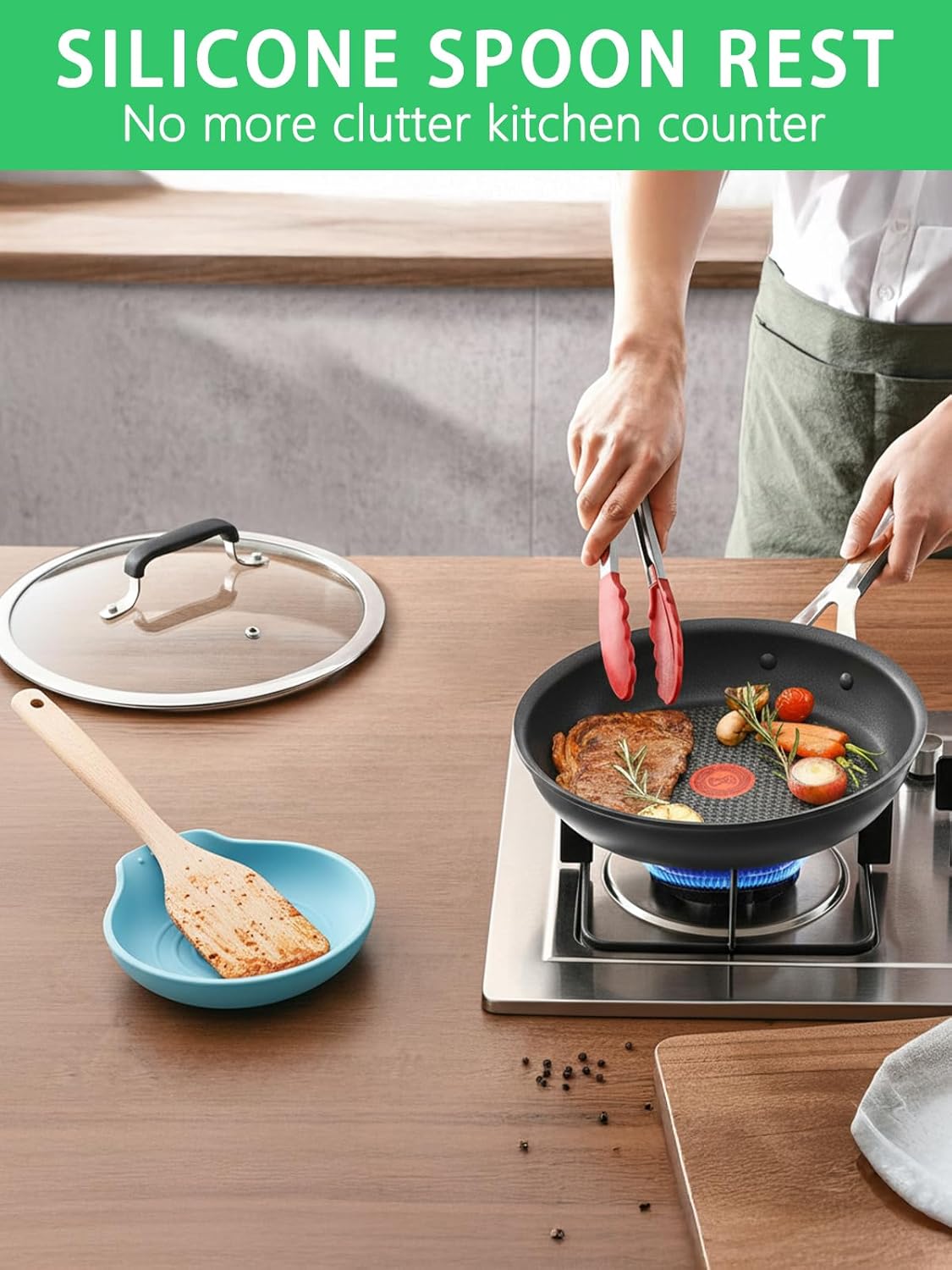 - 【Keep countertops tidy】The kitchen spoon rest's size - 6.1inch x 5.35inch adapts to a variety of untentils sizes. Its 1 inch deep edges could catch drips easily. And its heat-resistant and anti-slip protect kitchen utensils. Letting you say goodbye to cluttered counters and hello to a clean, organized and safe kitchen workspace.