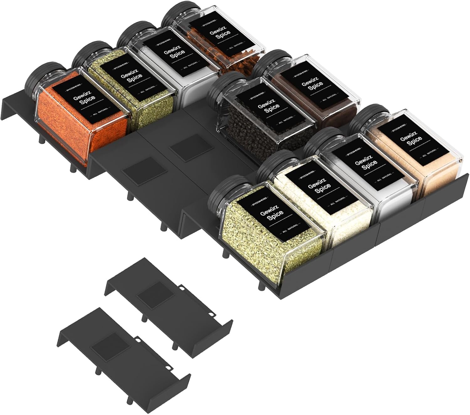 - Customizable Layout: The interlocking design allows you to customize the horizontal arrangement of the spice inserts, helping you make the most of your drawer space. Easily adjust the number of inserts to fit your specific needs and preferences