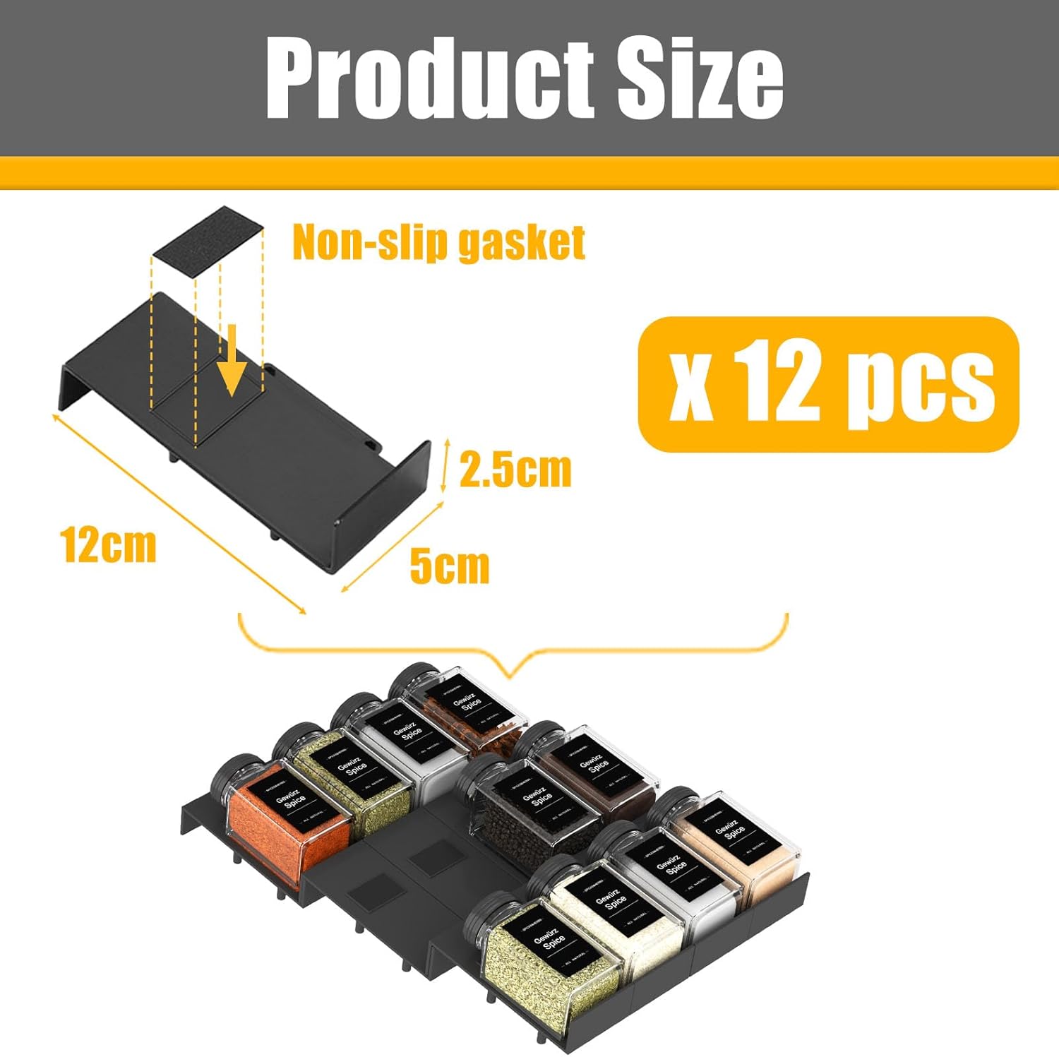- Durable Plastic Material: Spice rack organizer for cabinet is made of durable plastic. The 12pcs spice tray for drawer is strong and unbreakable, without misshaping. Seasoning organizer although not dishwasher safe, it can be easily cleaned by hand
