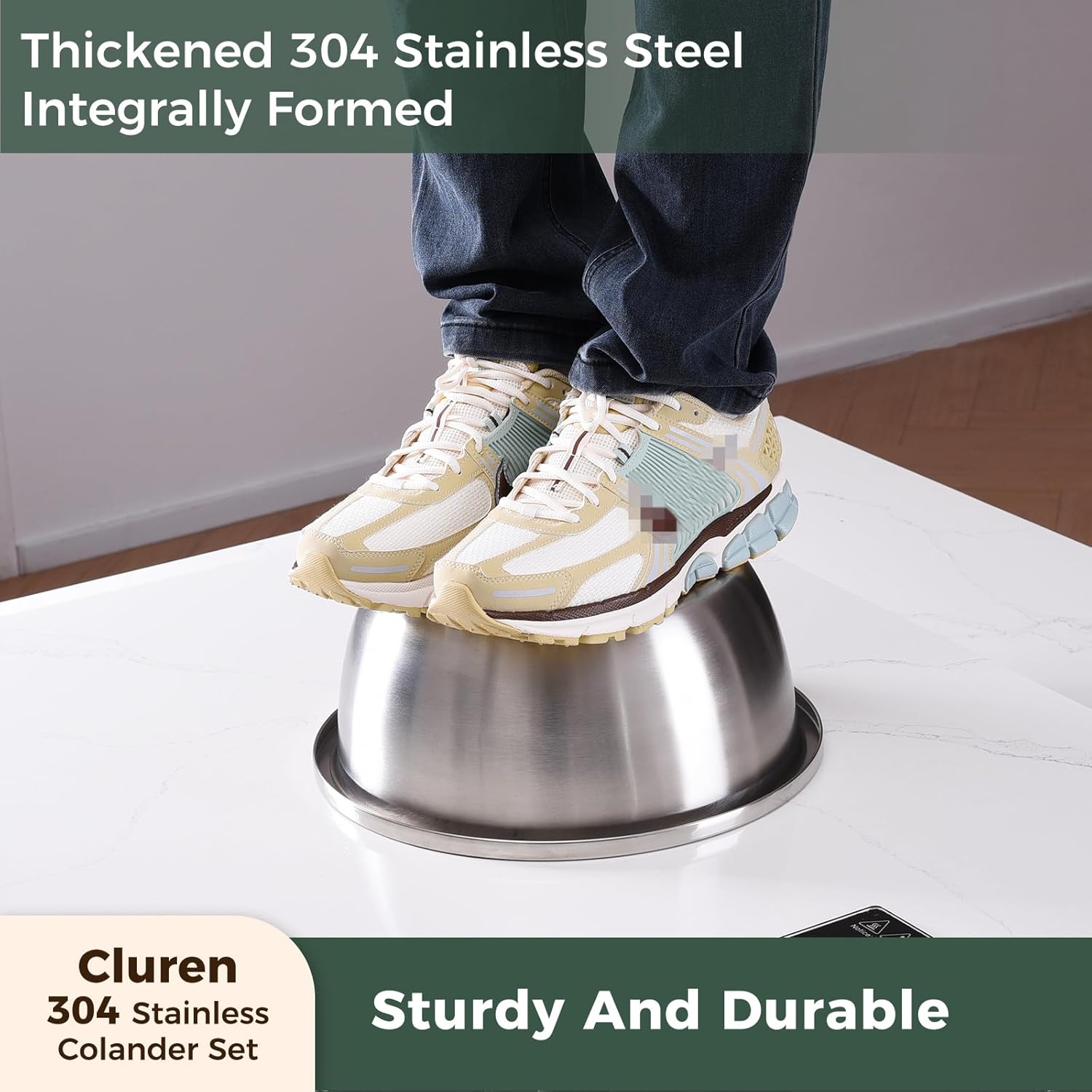 - ✨【Thickened & Ultra Durable】This colander set are reinforced with thickened construction! One-piece die-cast design ensures evethickness, preventing warping. while the bowl works on gas stoves🔥 directly and the set is dishwasher safe.