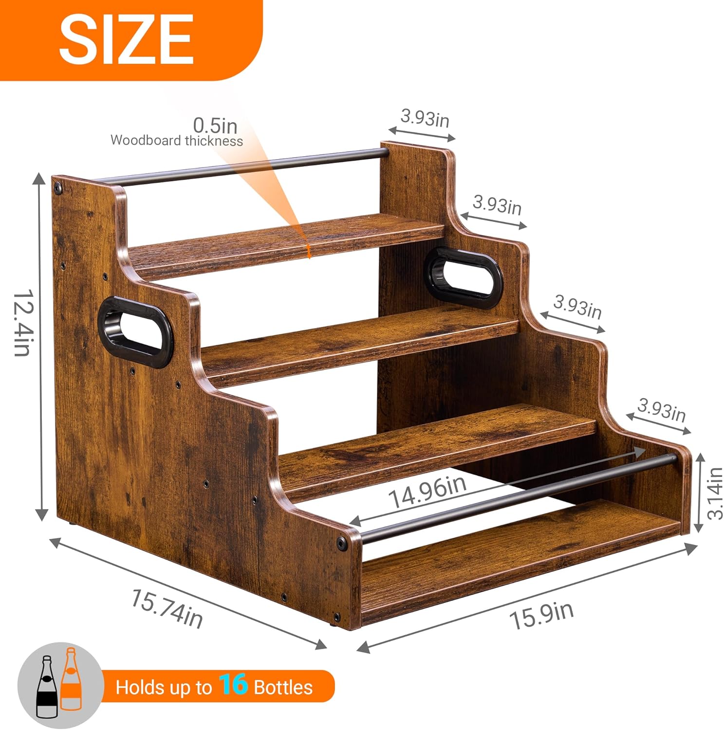 - CONVENIENT & PORTABLE DESIGN: Featuring integrated side handles, this whiskey shelf is incredibly easy to move. Effortlessly carry it from the kitchen to your home bar or lift it for easy cleaning underneath. This user-friendly design makes rearranging your bar setup a breeze.