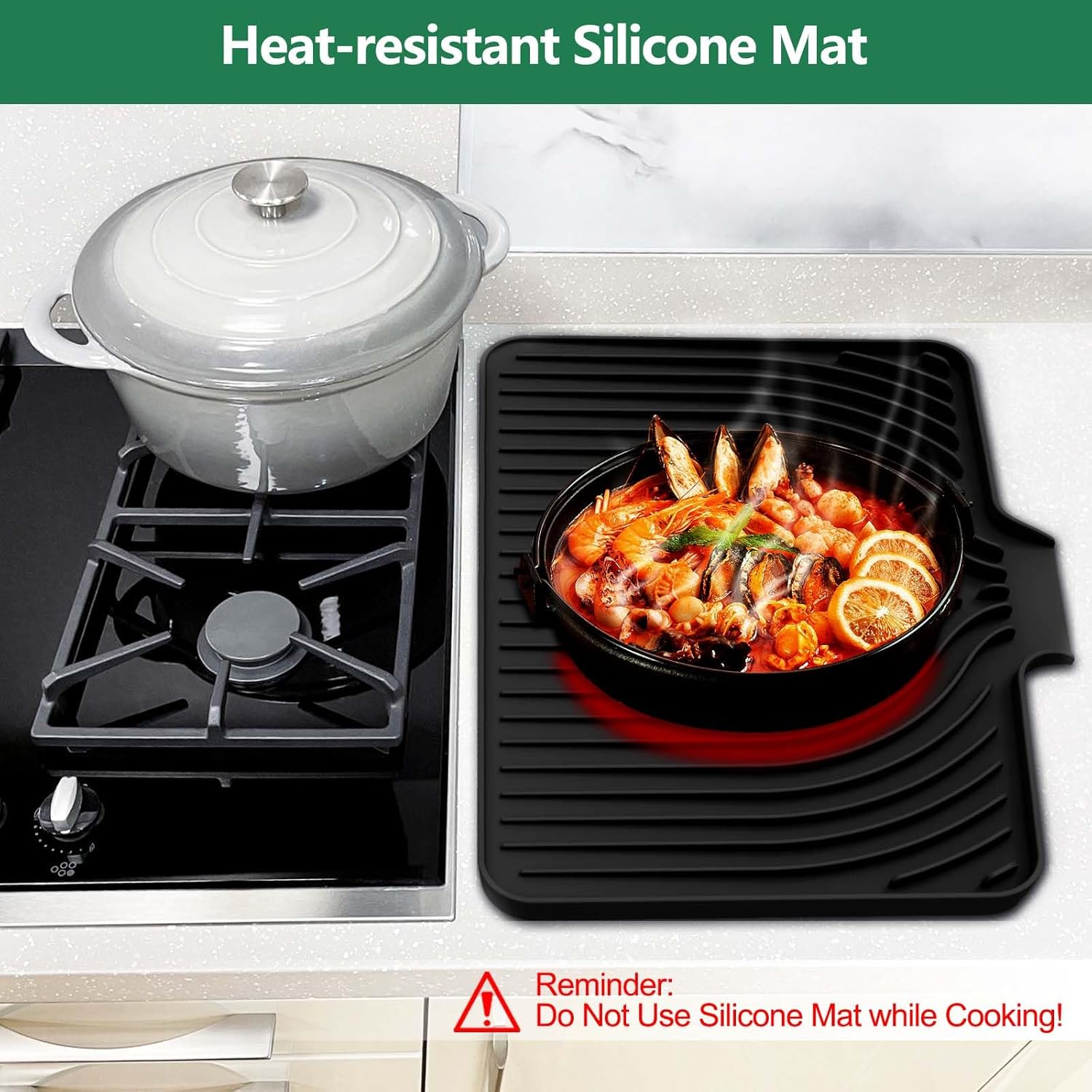 - Anti-Slip and Heat-Resistant: Dish mat drying kitchen mat has a great anti-slip design, keeping dishes, fruits, veggies and glassware steady. Besides, it's heat-resistant up to 450Β°F (230Β°C), safeguarding countertops well from hot pots and appliances
