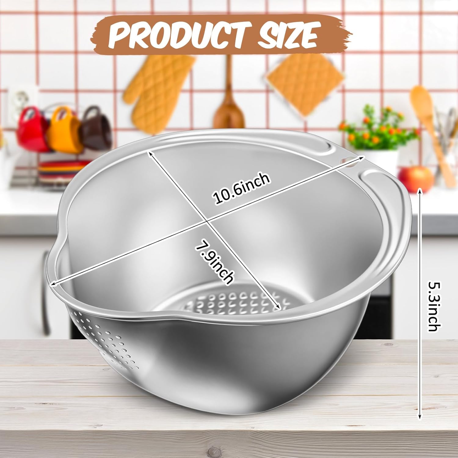 - Versatile Kitchen Essential: this rice washer strainer bowl is a must-have for any modern kitchen; Use it for draining, rinsing, or storing rice, pasta, grapes, cherries, beans, grains, and more
