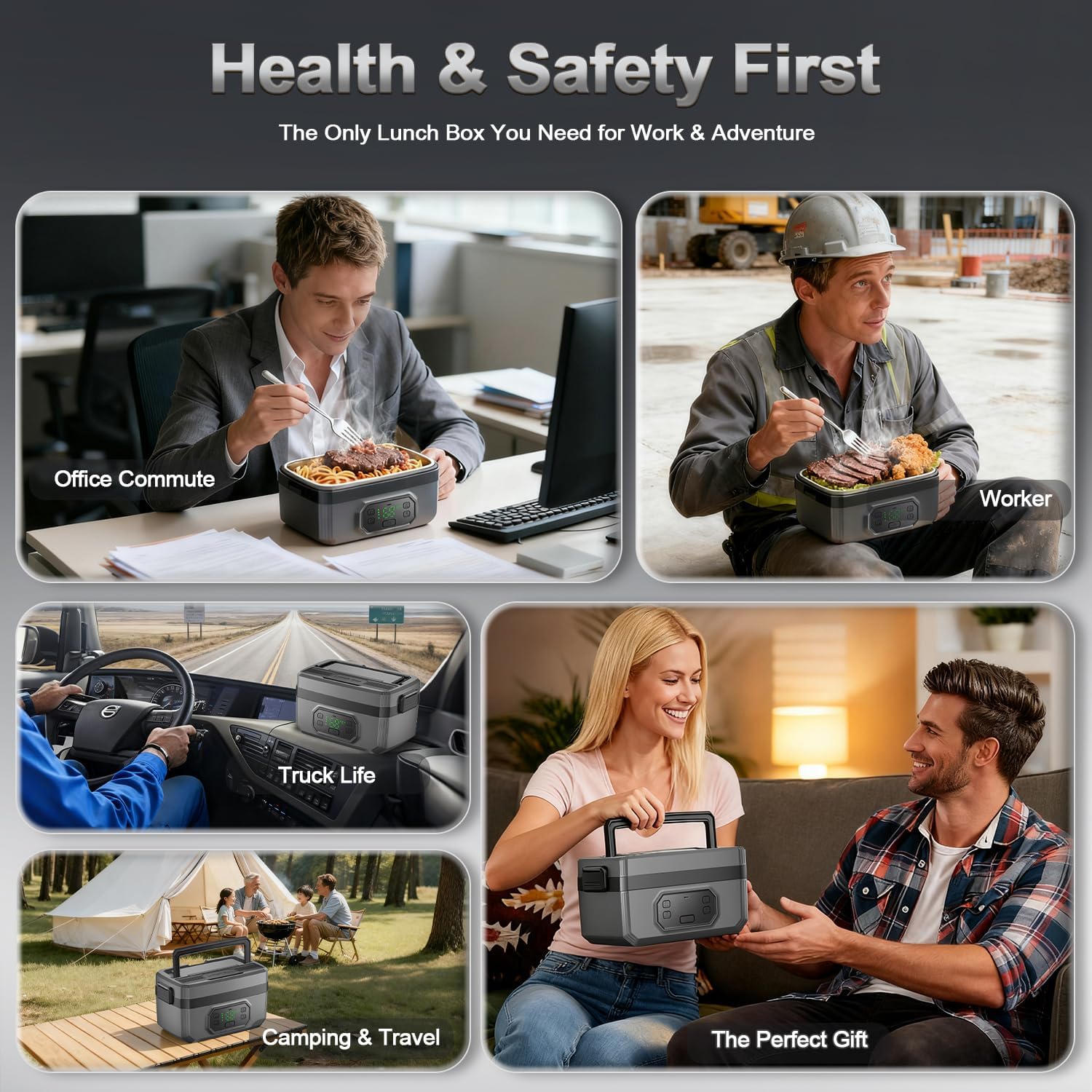- Rugged & Leakproof – Built for Tough Lifestyles: Built for rugged use, this heating lunch box for men features an upgraded thicker material that withstands outdoor bumps and drops. The cordless lunch box food heater includes a portable handle for easy carrying. Its dual-lid sealed leak-proof design locks in freshness, making it a reliable lonchera eléctrica portátil for travel/camping