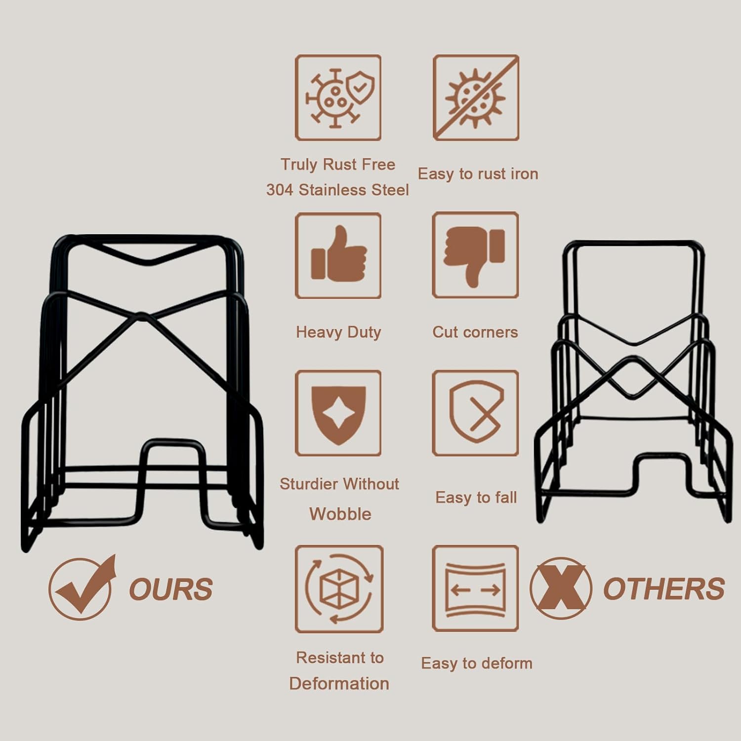 - BUILT TO LAST CUTTING BOARD RACK: made of always rust free 304 stainless steel to withstand daily use while lasting for years. The round edge design helps protect against scratches, and the anti-skid pads keeps everything firmly in place