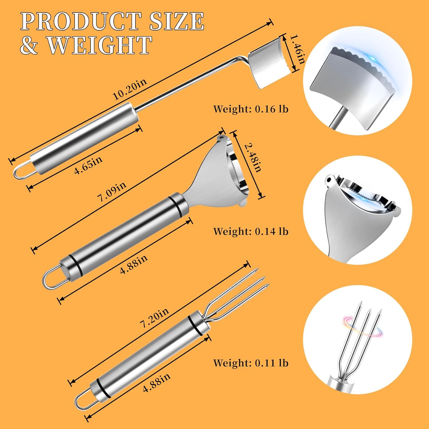 - Safe Corn Cob Stripper: Equipped with a long handle to keep fingers 3+ inches from the blade and a downward-push design for unparalleled safety and convenience.
