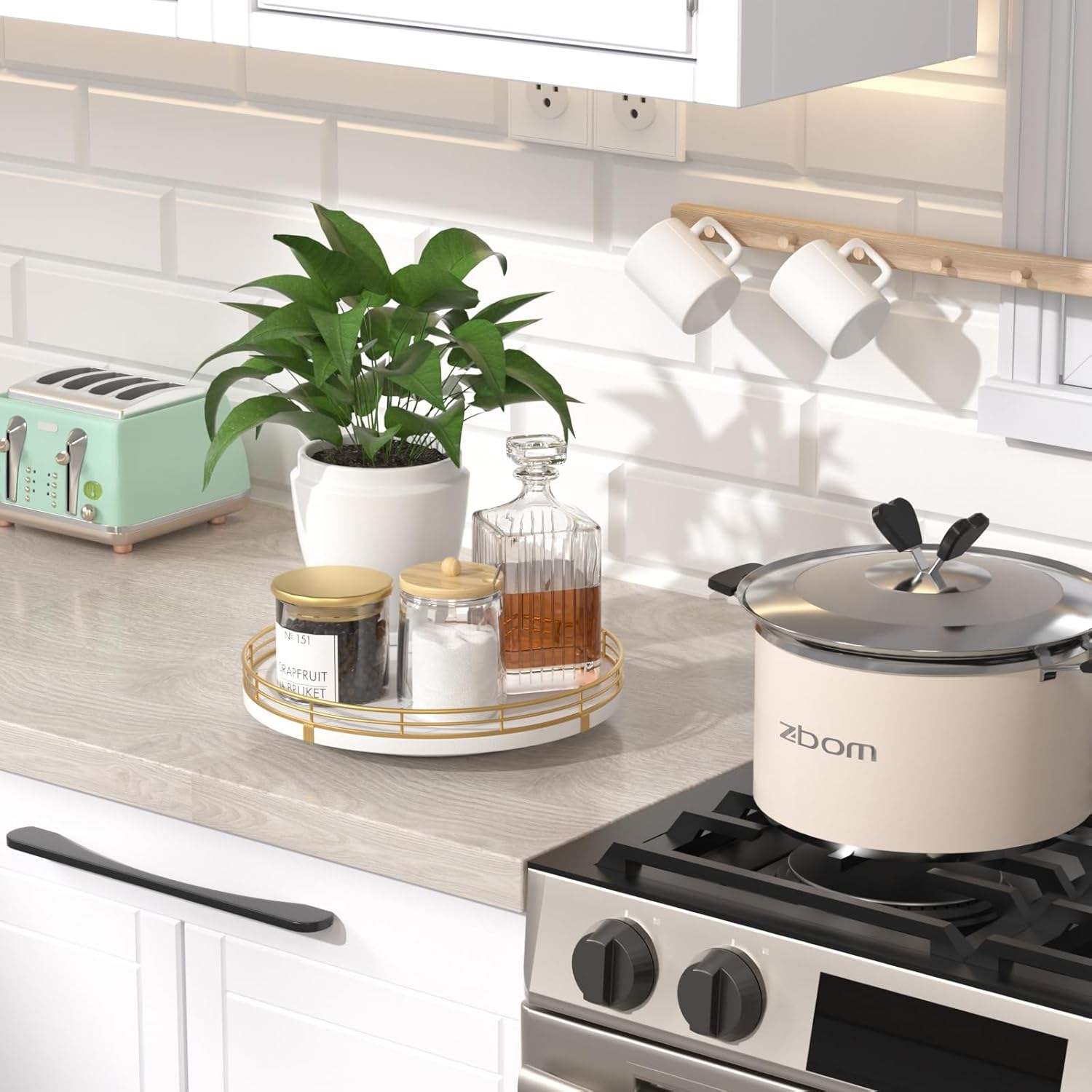 - 【Versatile Home Organizer】More than just a kitchen counter organizer, this lazy susan can also be used for coffee stations, bathroom essentials, or as a rotating tray for skincare and cosmetics. A true lazy susan organizer for cabinet, countertop, and beyond.