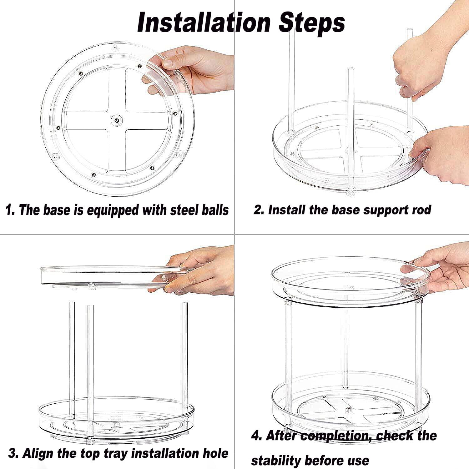 - 【Optimized Design Upgrade】: 1.The double-layer design saves storage space and enhances the daily load-bearing capacity with a sturdy bracket. The space between the two layers can accommodate items up to 7.1 inches. 2.The diamond pattern of the lazy Susan's appearance is simple yet elegant, making it easy to match with our daily home settings. 3.The internal flat placement uses an anti-slip pattern to stabilize our items. 4.The bottom adds anti-slip foot pads to increase the friction on the bottom, making it less likely to shake during rotation.