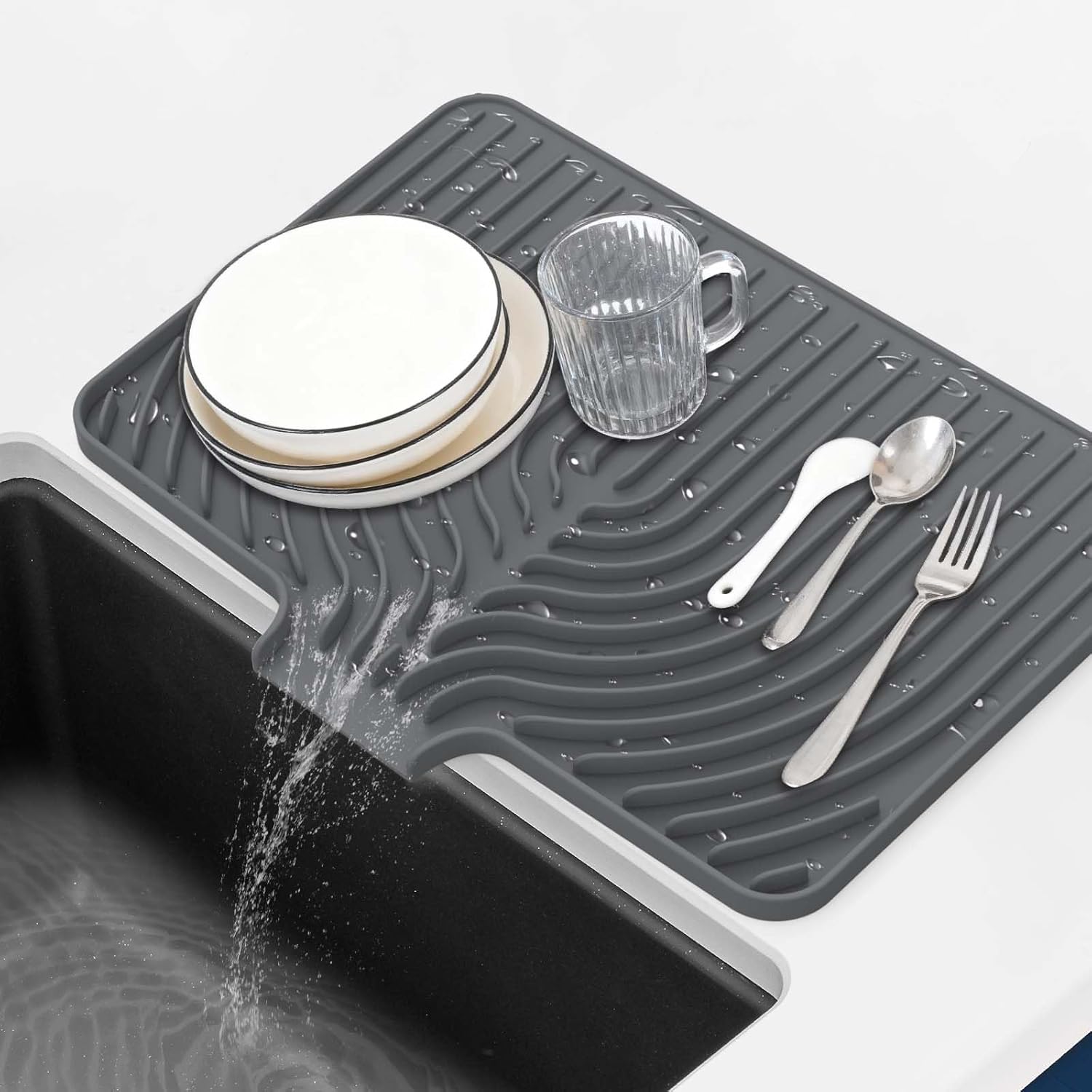 GUUKIN Silicone Dish Drying Mat,17.7" x 11.8 " Drying Matt Kitchen Counter, Non-Slip Drying Pad, Easy Clean Pad for Countertop Protection, Multi-Functional Use, Not applicable Bumps up sink (Grey)